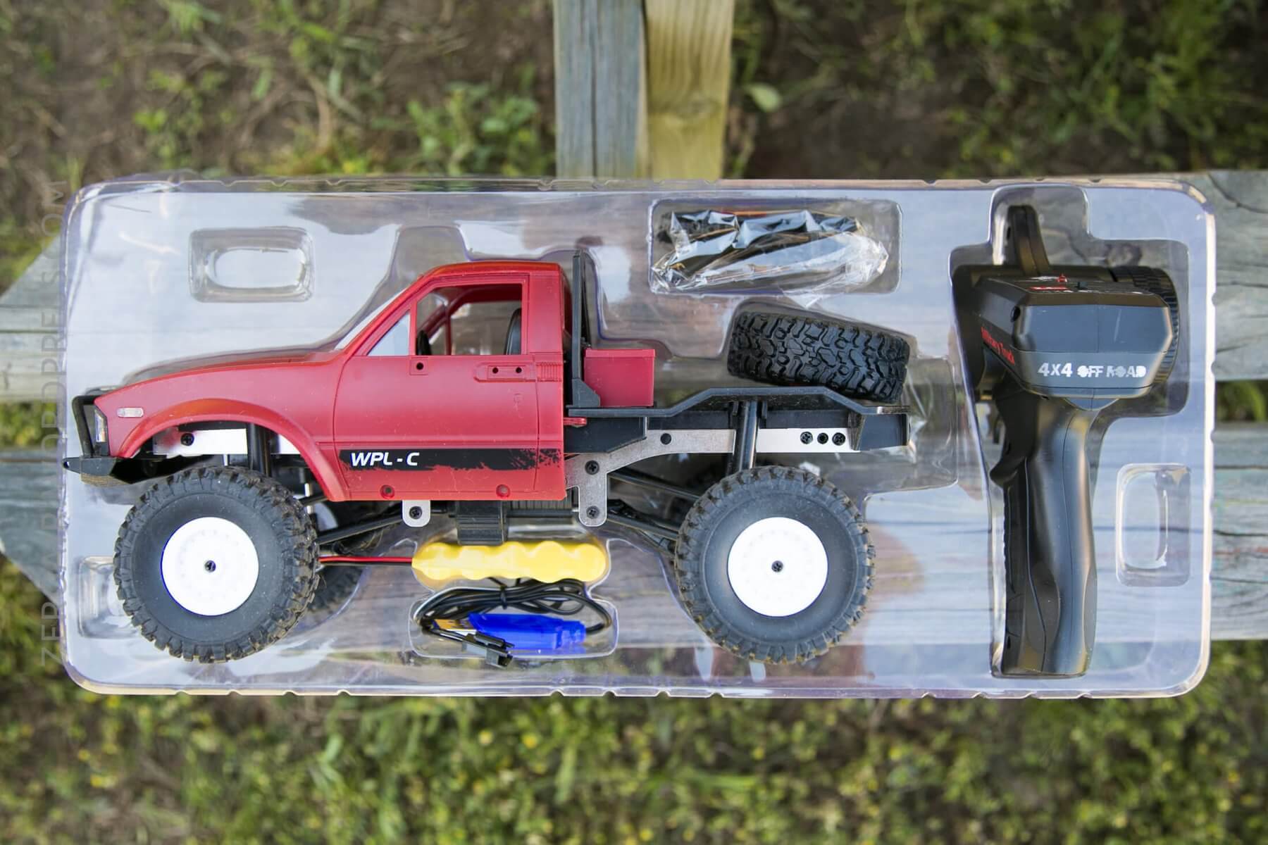Two body colors of this truck, but they’re the same functionally. There are also two packages: a kit and an RTR. The RTR is “ready to roll,” which is what I have here. The kit ships in pieces and must be built. The kit says it doesn’t include many of the parts you’ll need, and the RTR is actually currently cheaper, so that’s what I’d recommend.