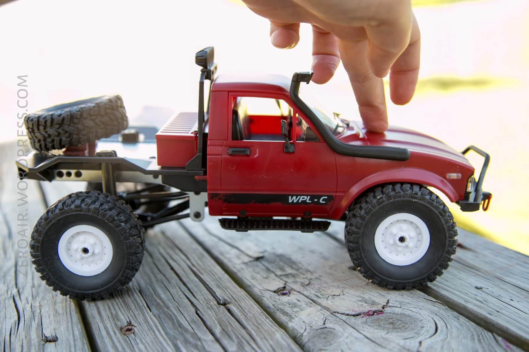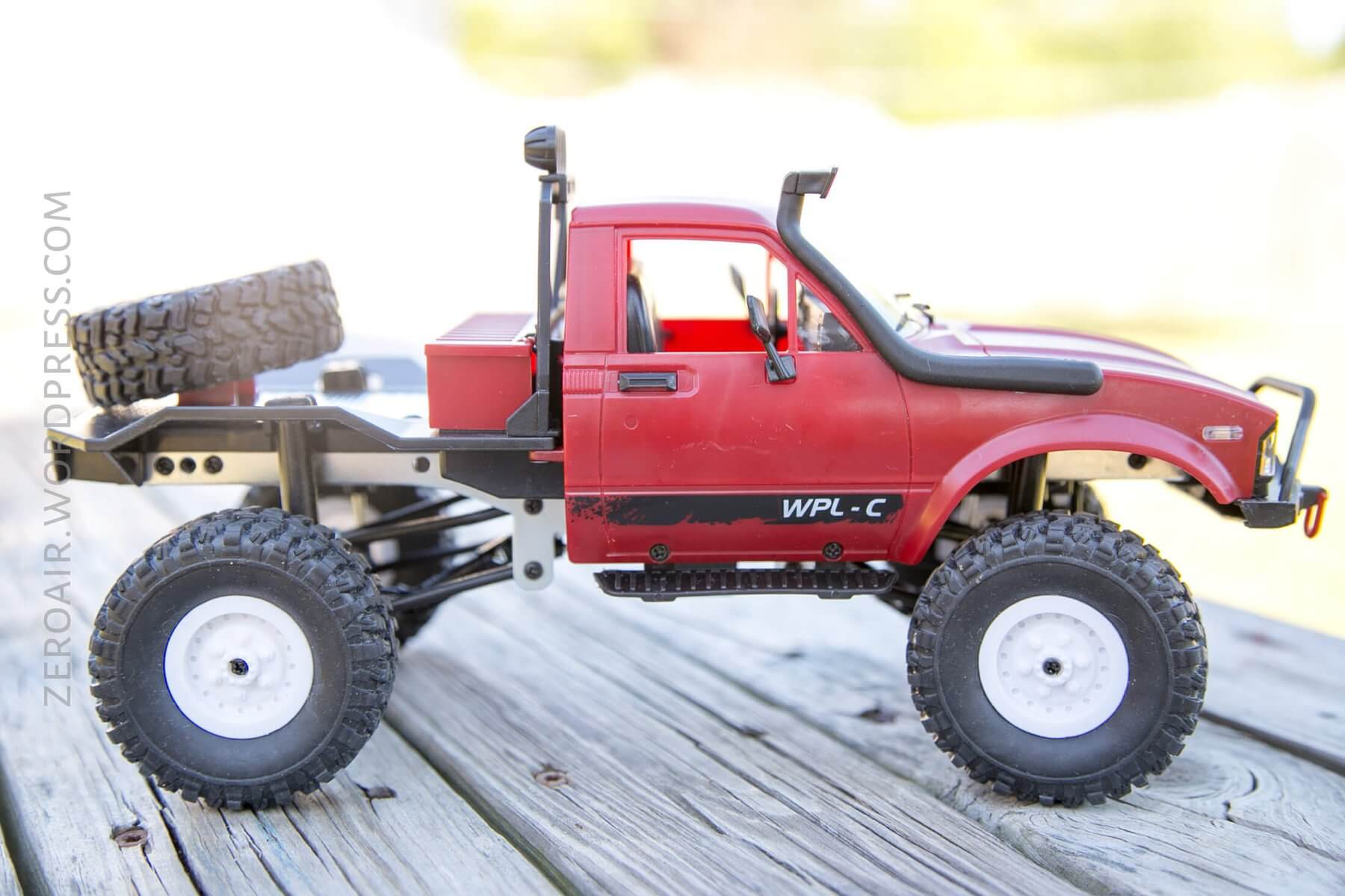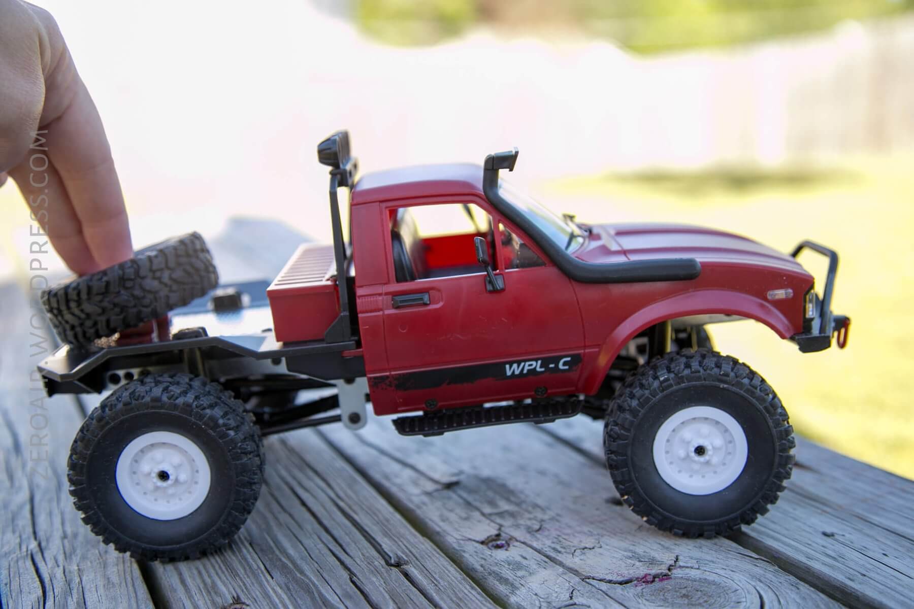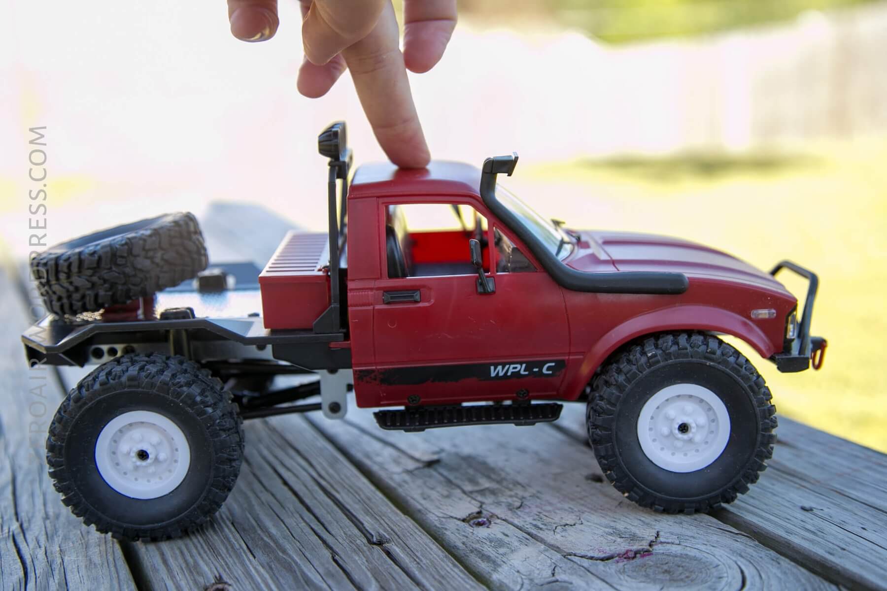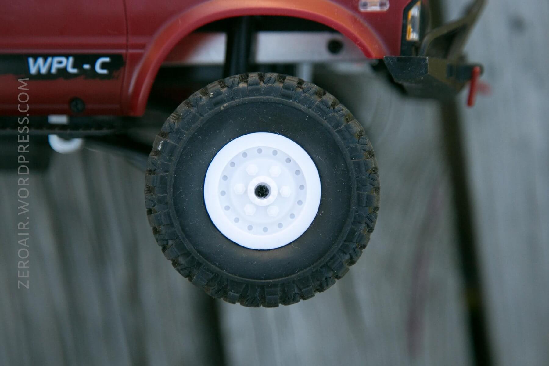 The tires on the WPL C14 are very treaded and moderately squishy. They aren’t extremely voluminous, and I don’t believe this is meant to be a real mud truck, so I’m not sure how much hard-use they’d handle. But for tooling around the house or backyard, these tires are adequate.