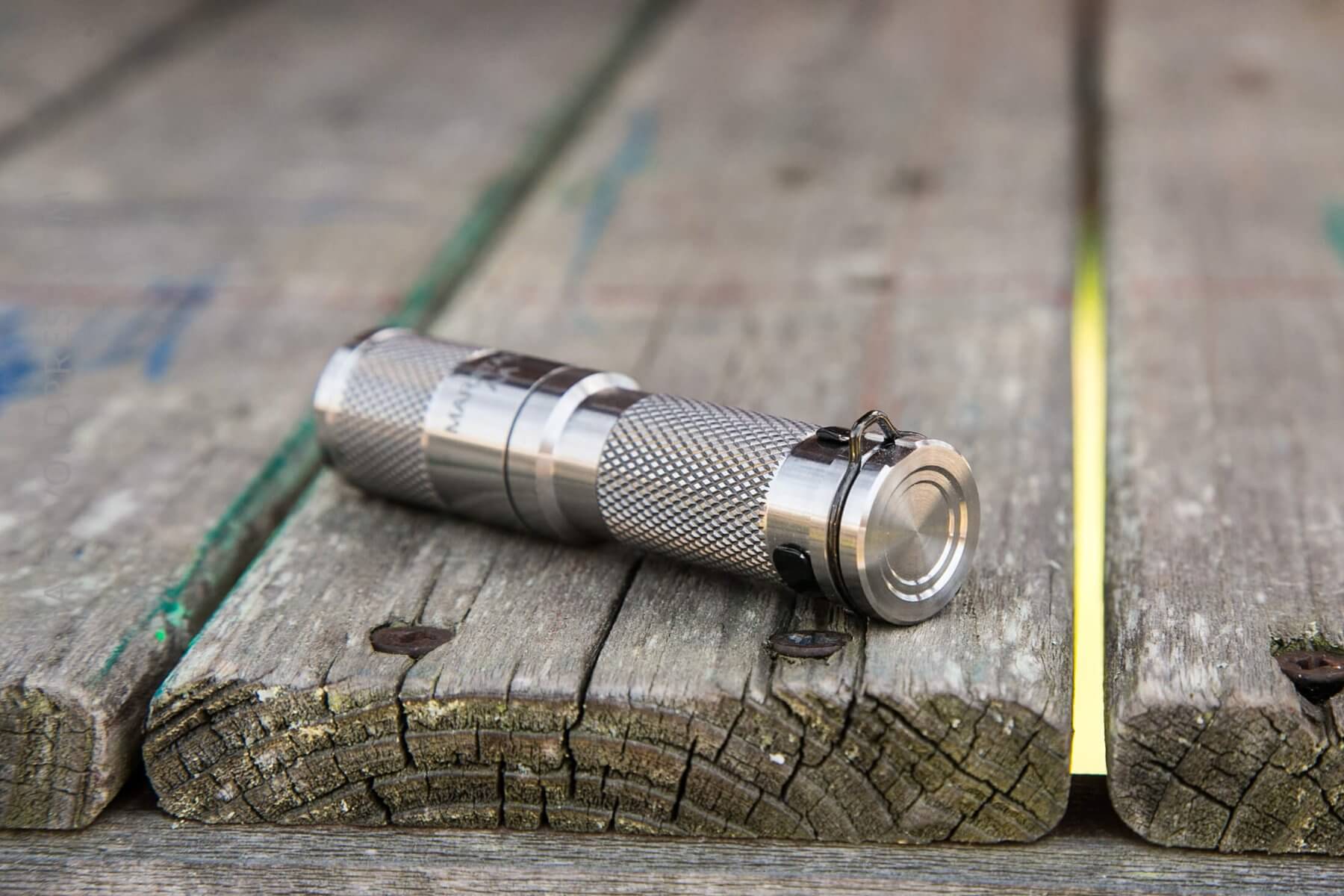 Maratac by CountyComm has released a new Maratac AA Titanium AA flashlight in titanium, claiming to use a Nichia emitter. Read on to see that it’s actually Cree!
