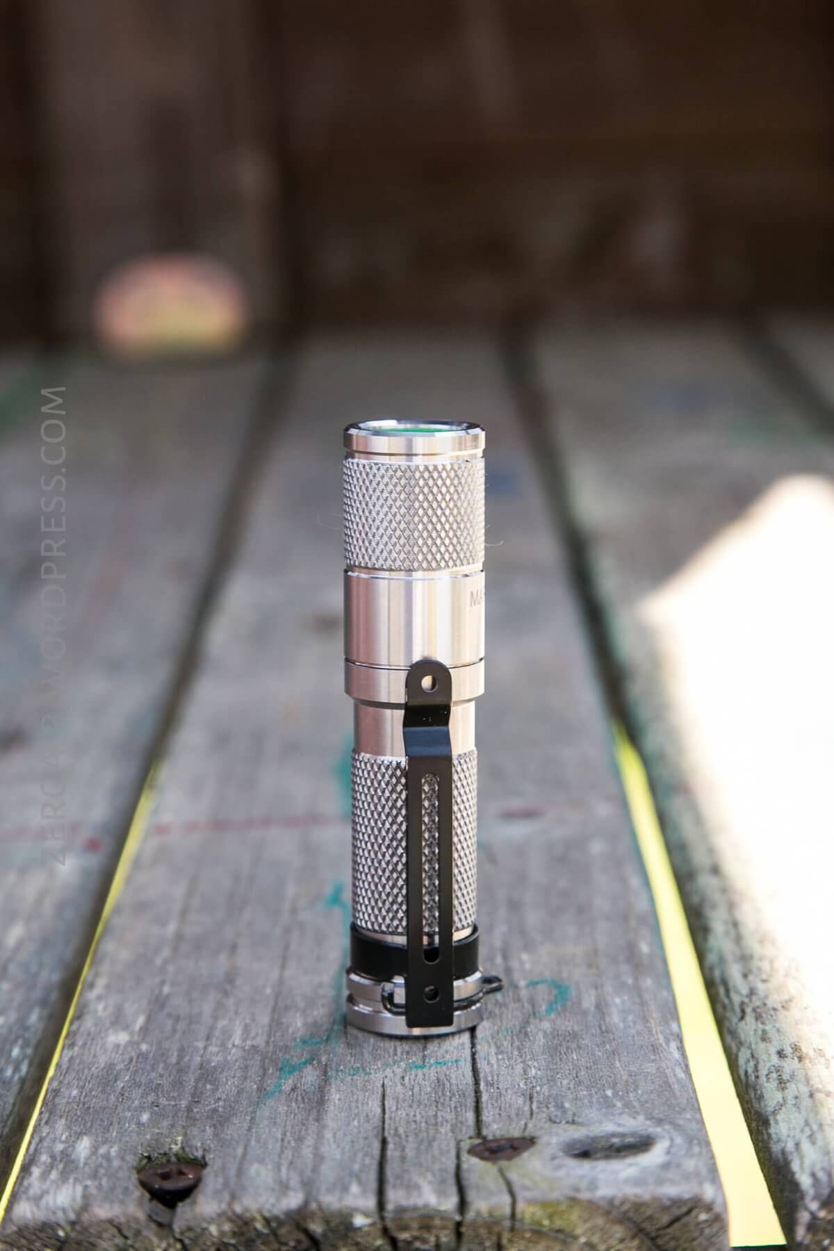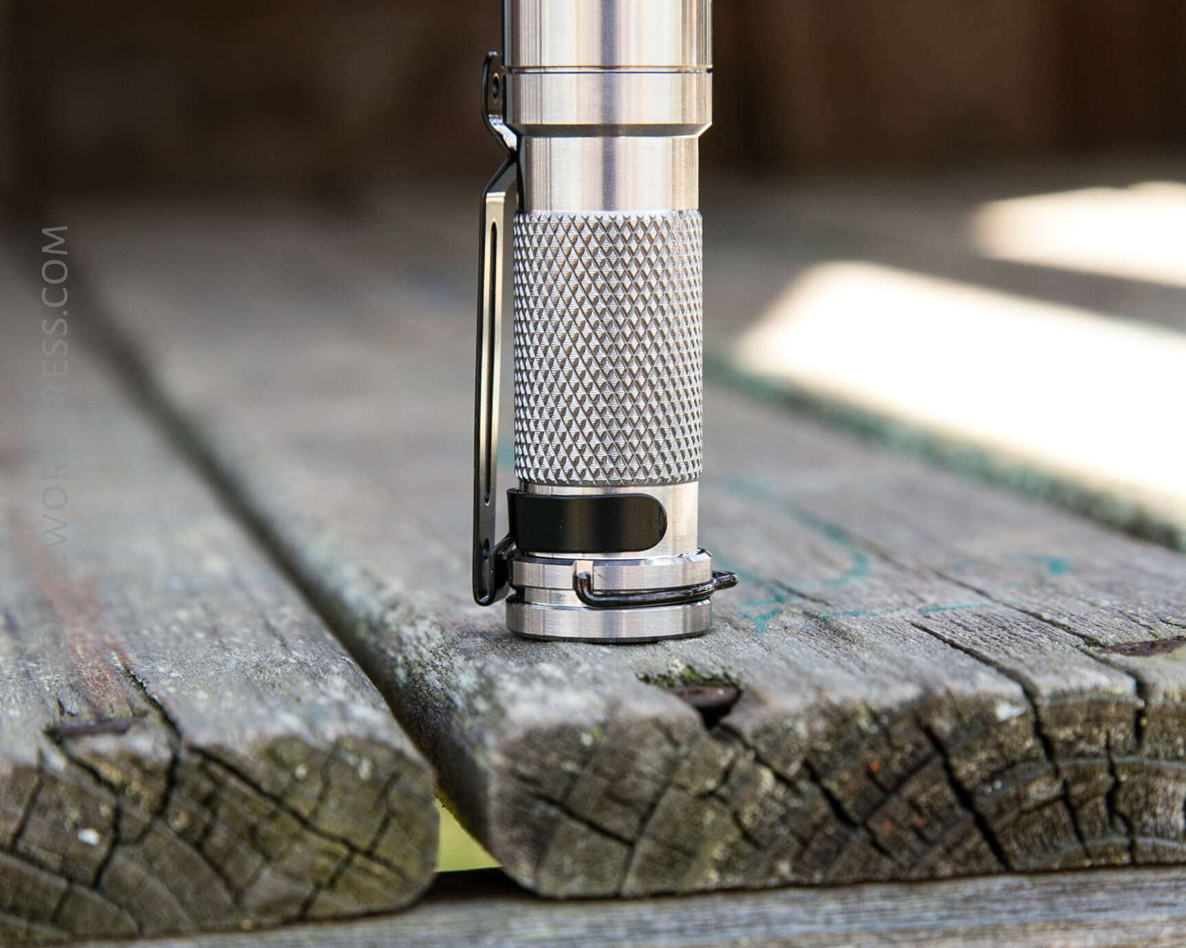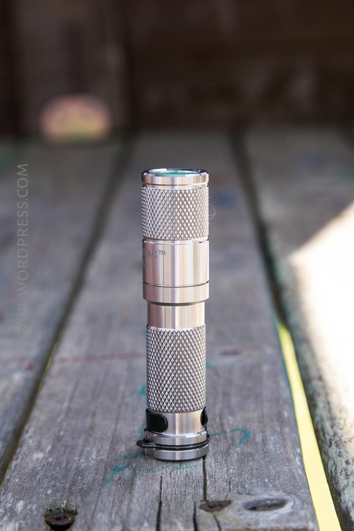 I am thoroughly impressed with the build quality of this little AA light. The shiny parts are shiny, and the knurling is very good quality (i.e., ‘even’) diamond flat-top knurling.