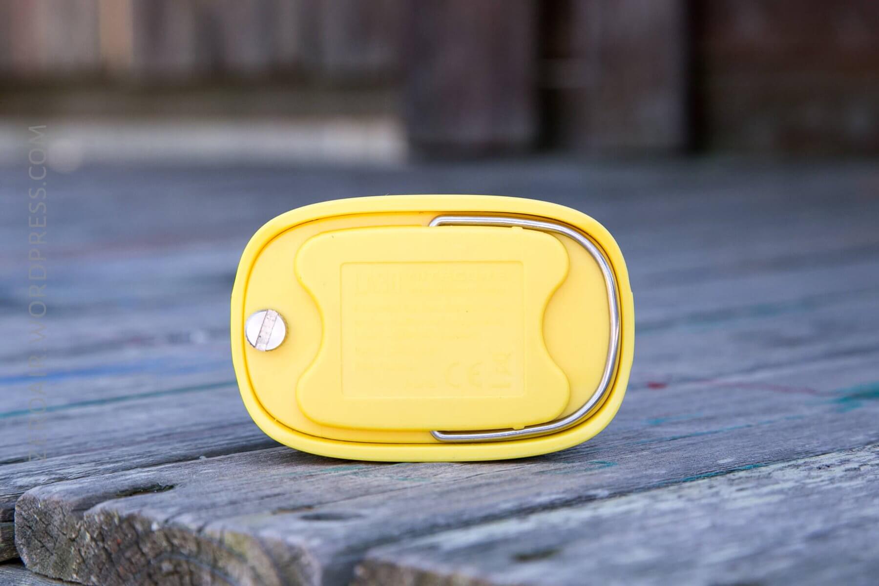 Next is the metal loop, which would be useful for hanging the light from inside a tent or places like that. It is possible to remove the loop (just take off the cover and spread the loop out a little, and it’ll come out of the base). It’s sprung, so when it reaches a certain point, it’ll want to snap to the ‘closed’ position.