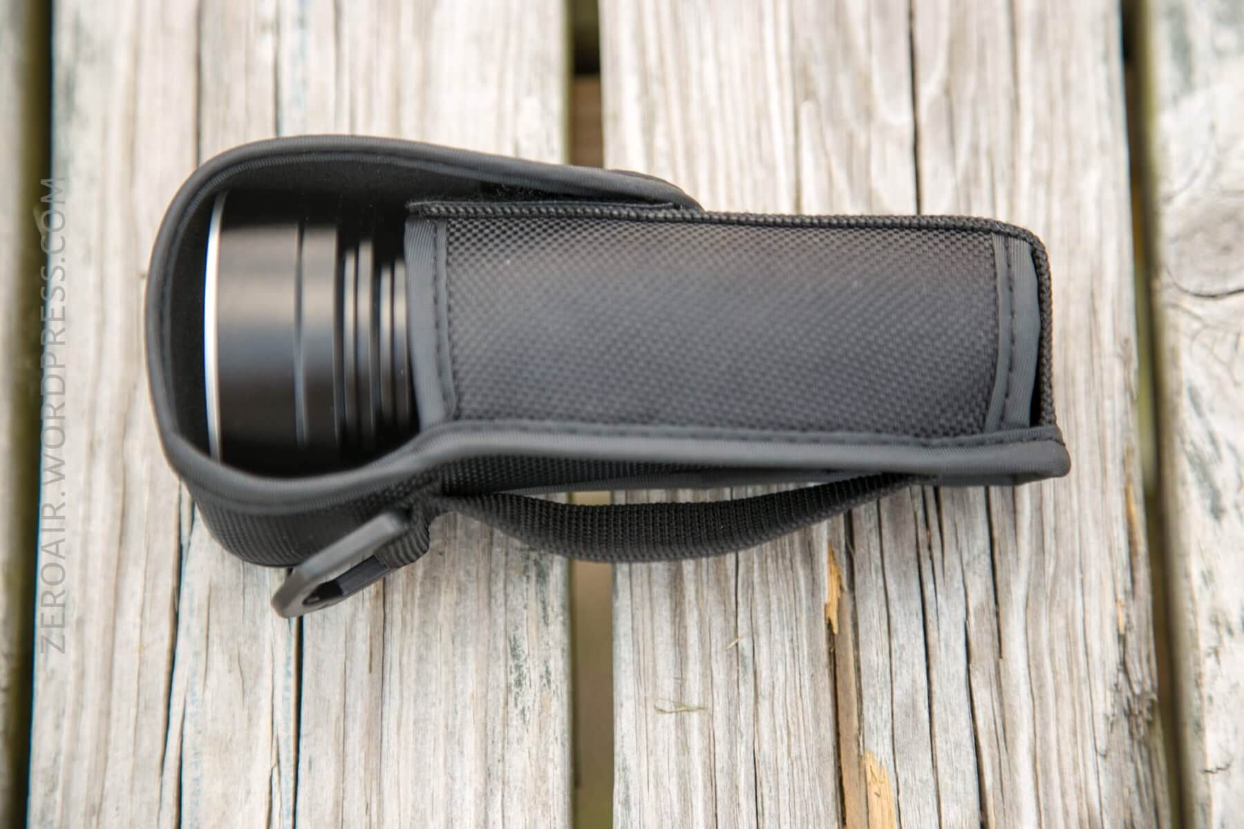 A nylon pouch is included. The light will only go in one direction – tail down. The pouch is of normal quality.