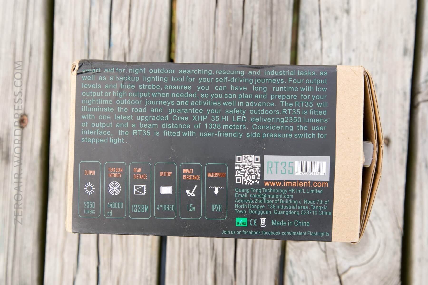 The Imalent RT35 flashlight runs up to four 18650 cells. The deep smooth reflector gives great throw with the Cree XHP35 HI emitter. Read on!