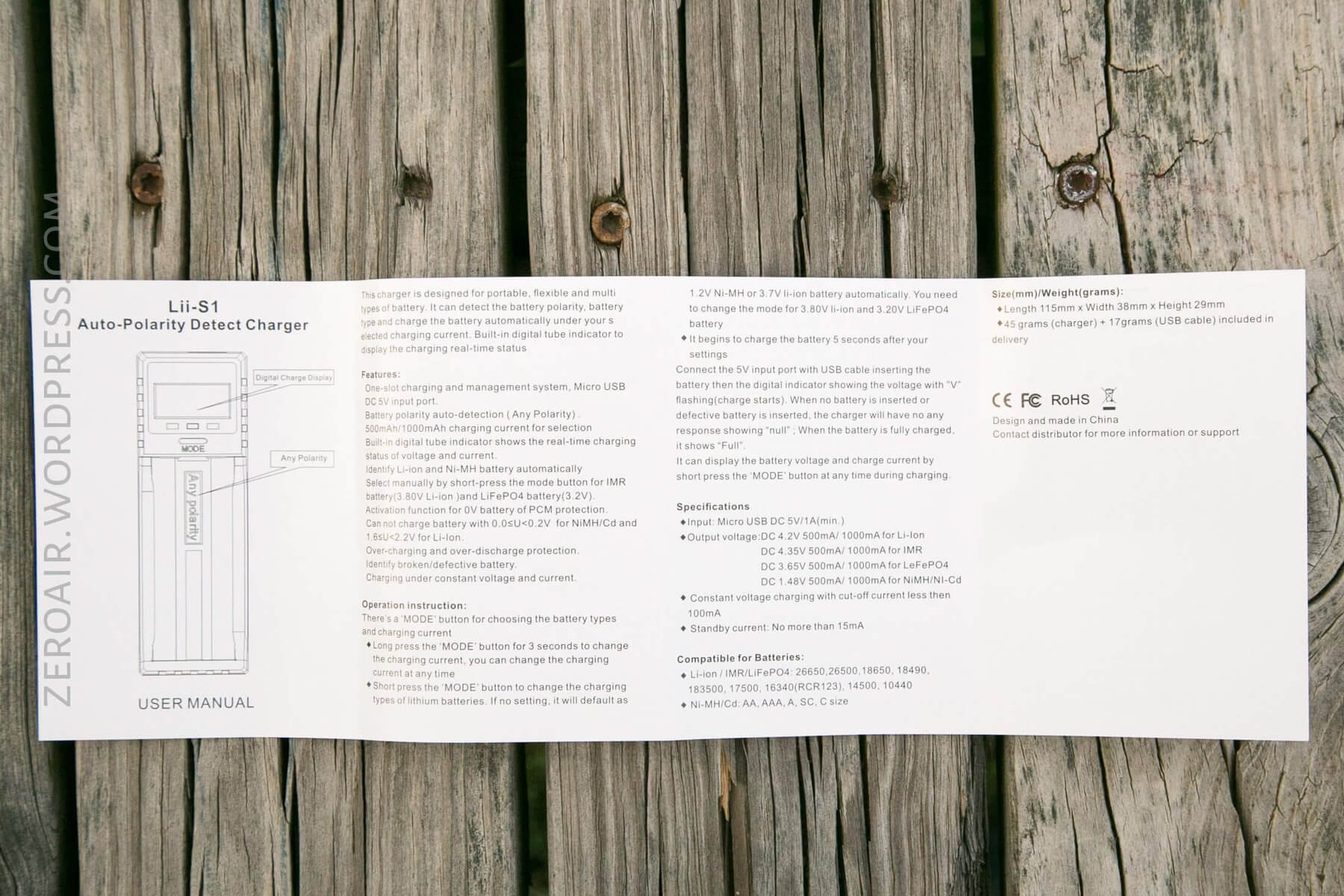 The manual is a long, fold-out one-page affair, with the other in Chinese. It’s pretty thorough, but this isn’t an extremely feature-dense charger, so the manual is still short.