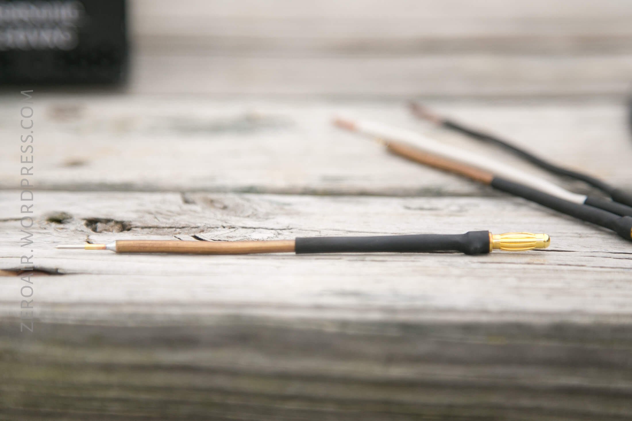 Using the 14ga silicone wire, I made some leads. Not simply leads though – I made essentially extensions, and the option to connect a number of style tips. I only show two types below: Spring tip, and solid copper (wire).