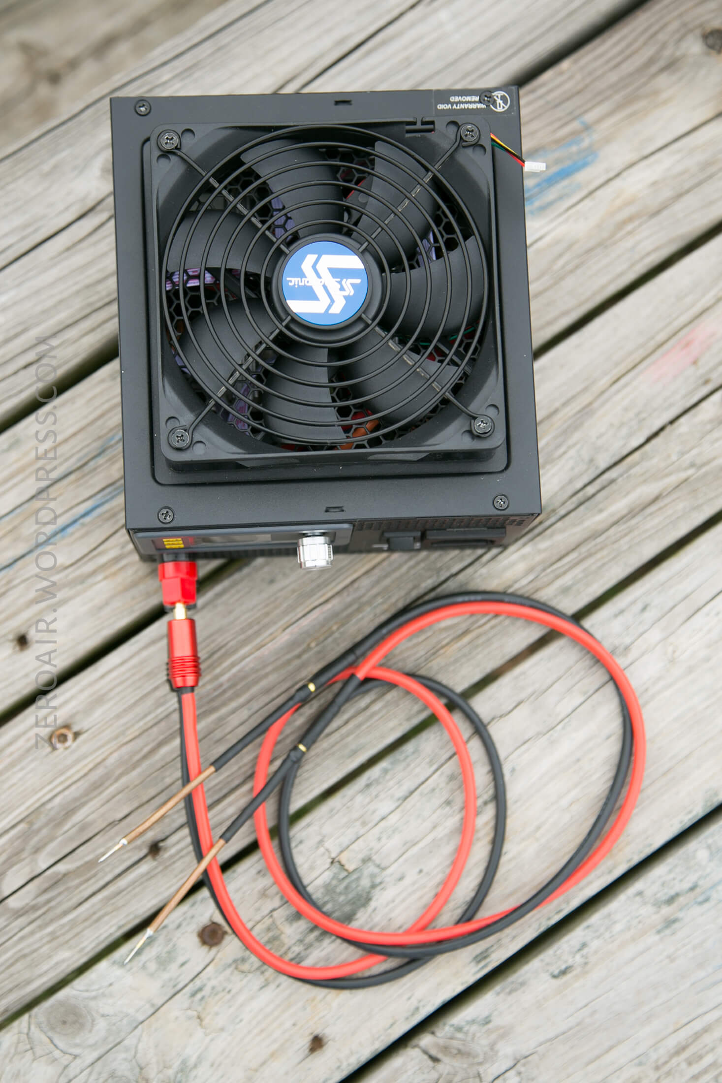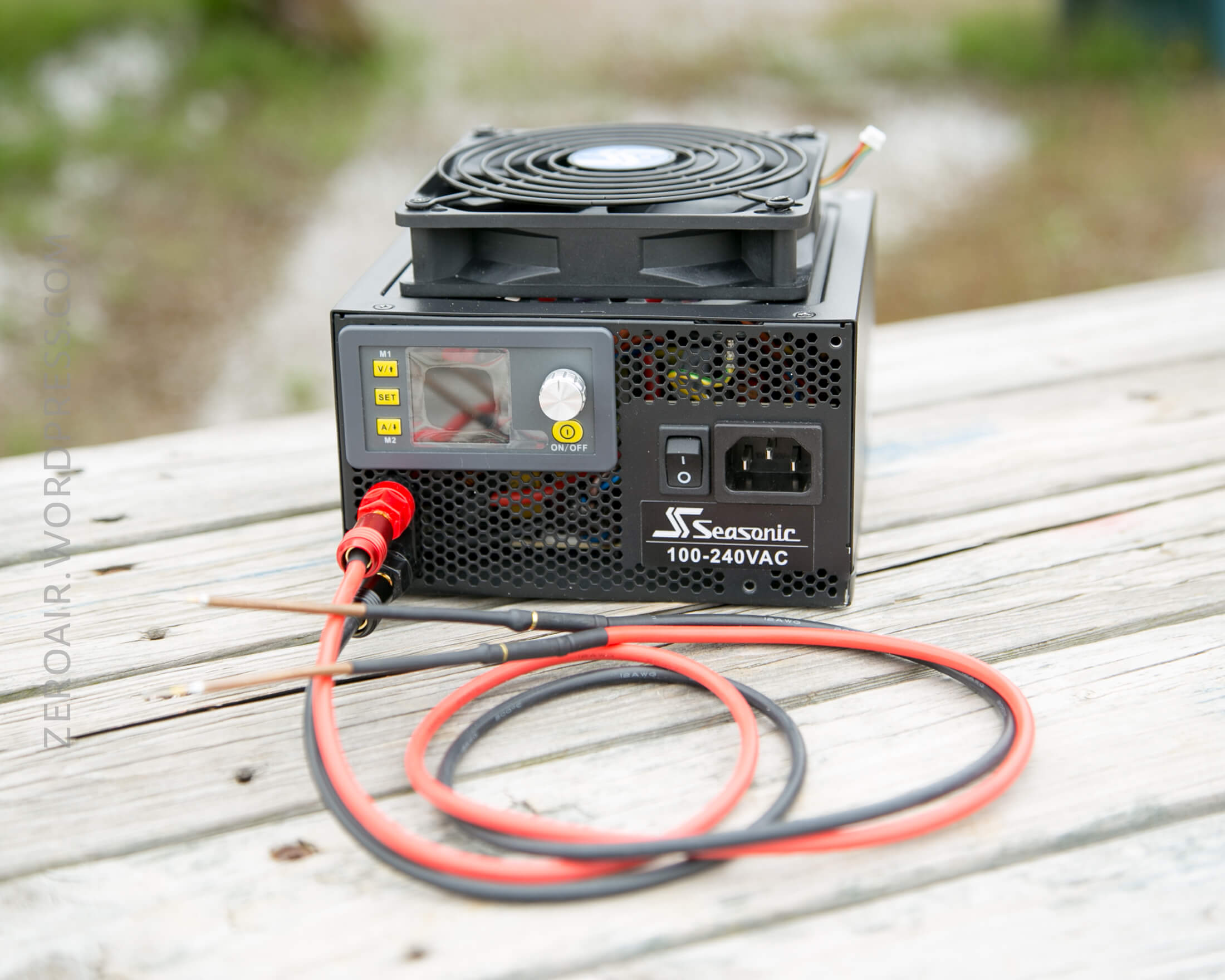 Here’s basically what we’re building. It’s an ATX computer power supply, to which I’ve added a set of banana plugs attached to a RuiDeng 5020 adjustable current adjustable voltage power supply.