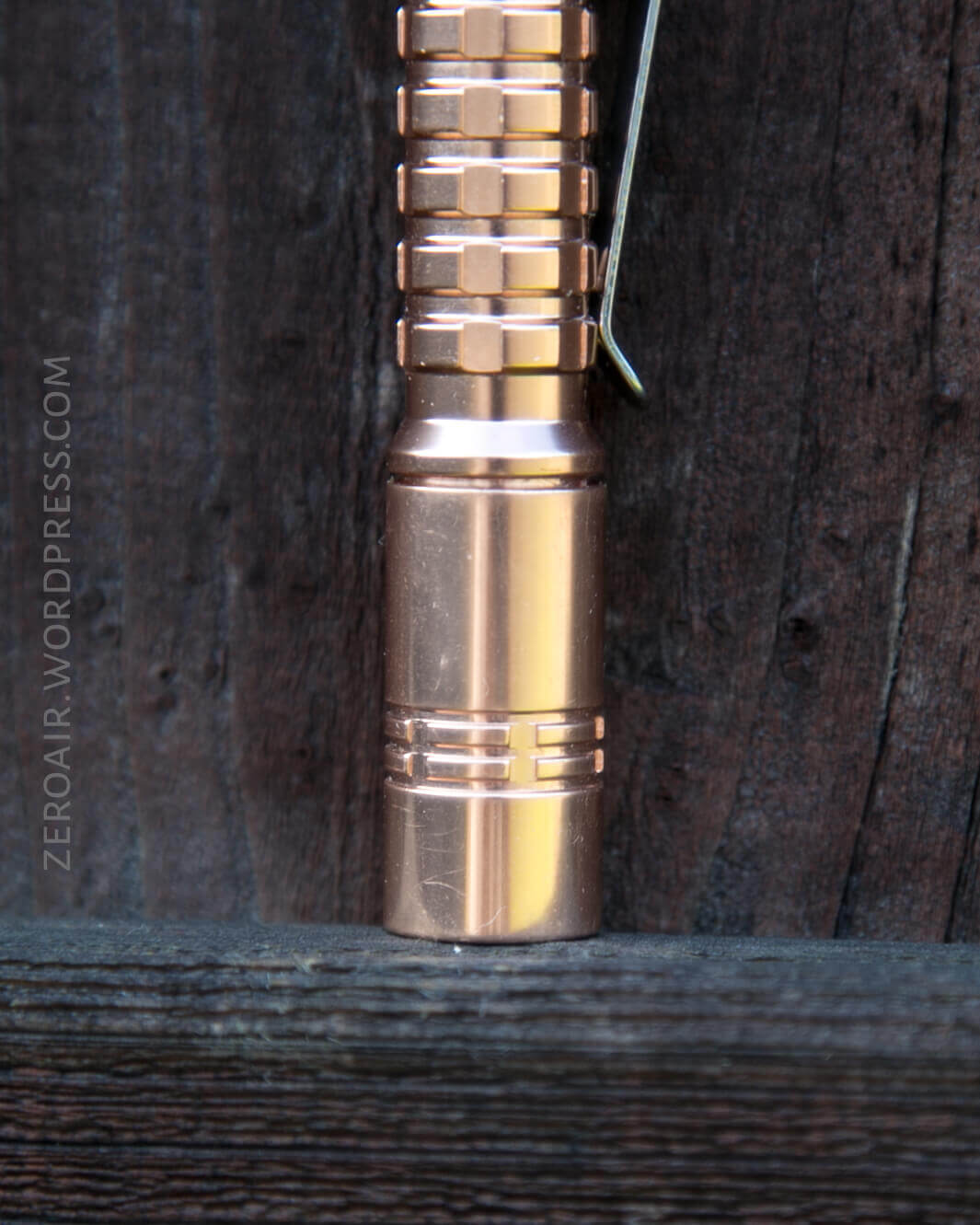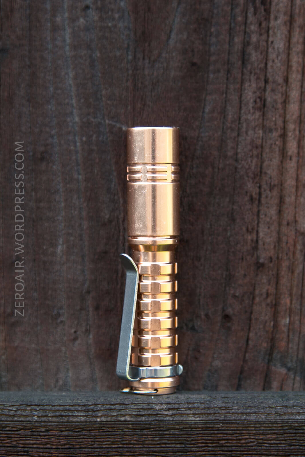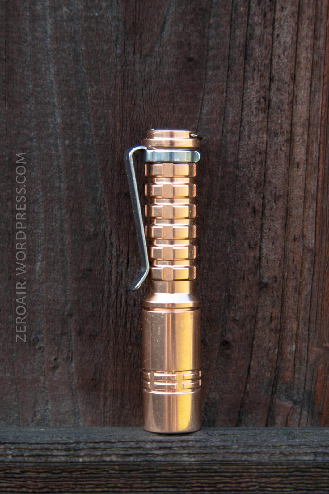 The copper is stunning. The coating will probably be polarizing, however. I think most would argue that copper on flashlights shouldn’t be coated. I’d agree. But I happen to like the coating because I don’t like the smell of copper. Brass, on the other hand, I would be into! It’s possible to remove the coating, but I’m not sure what the process is.