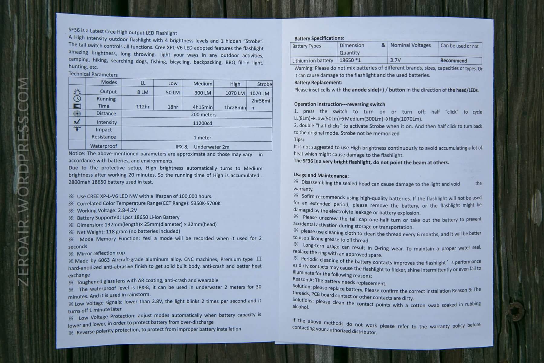 The SF36 is powered by a single 18650, which is included with the kit. It’s rated at 2800mAh.