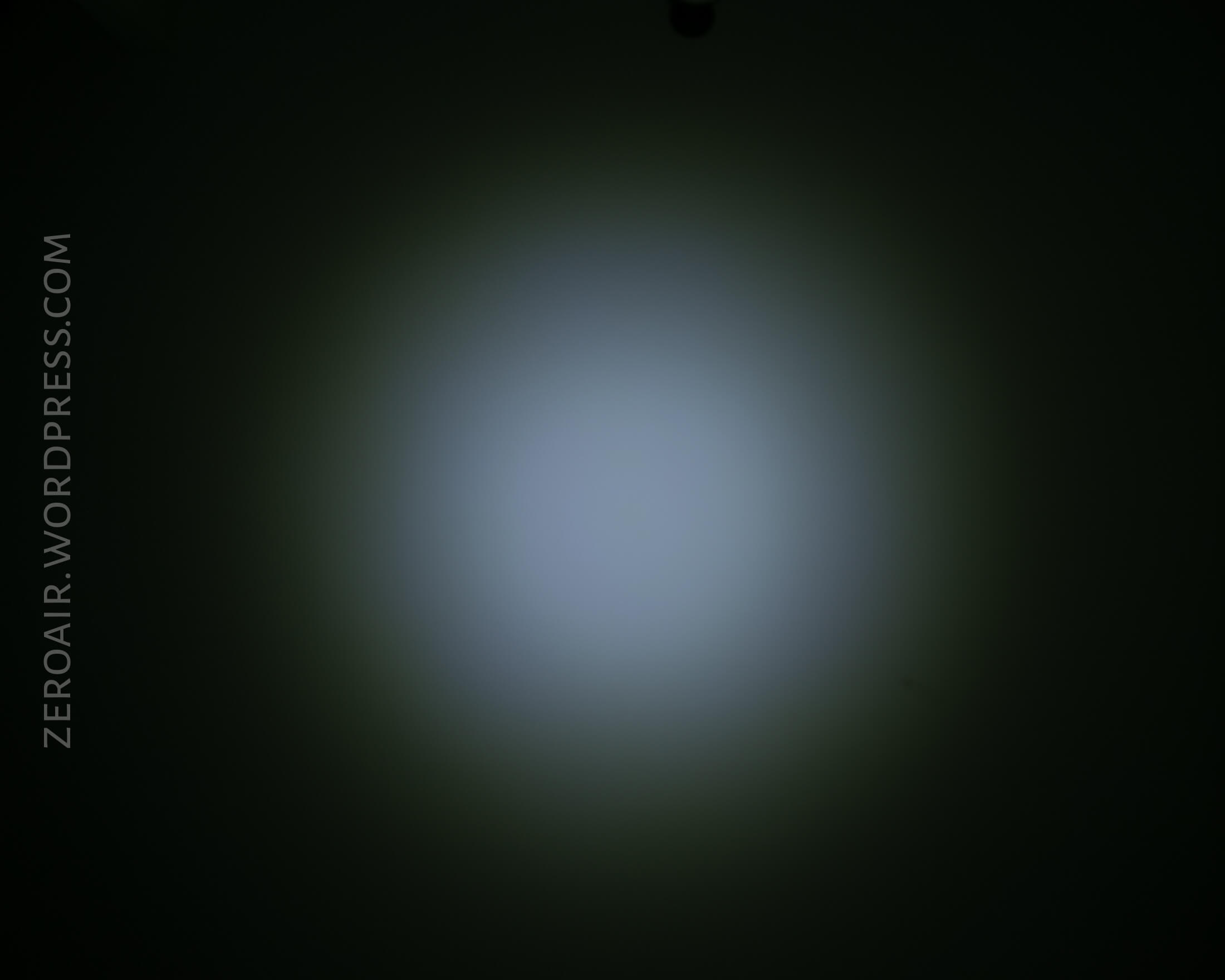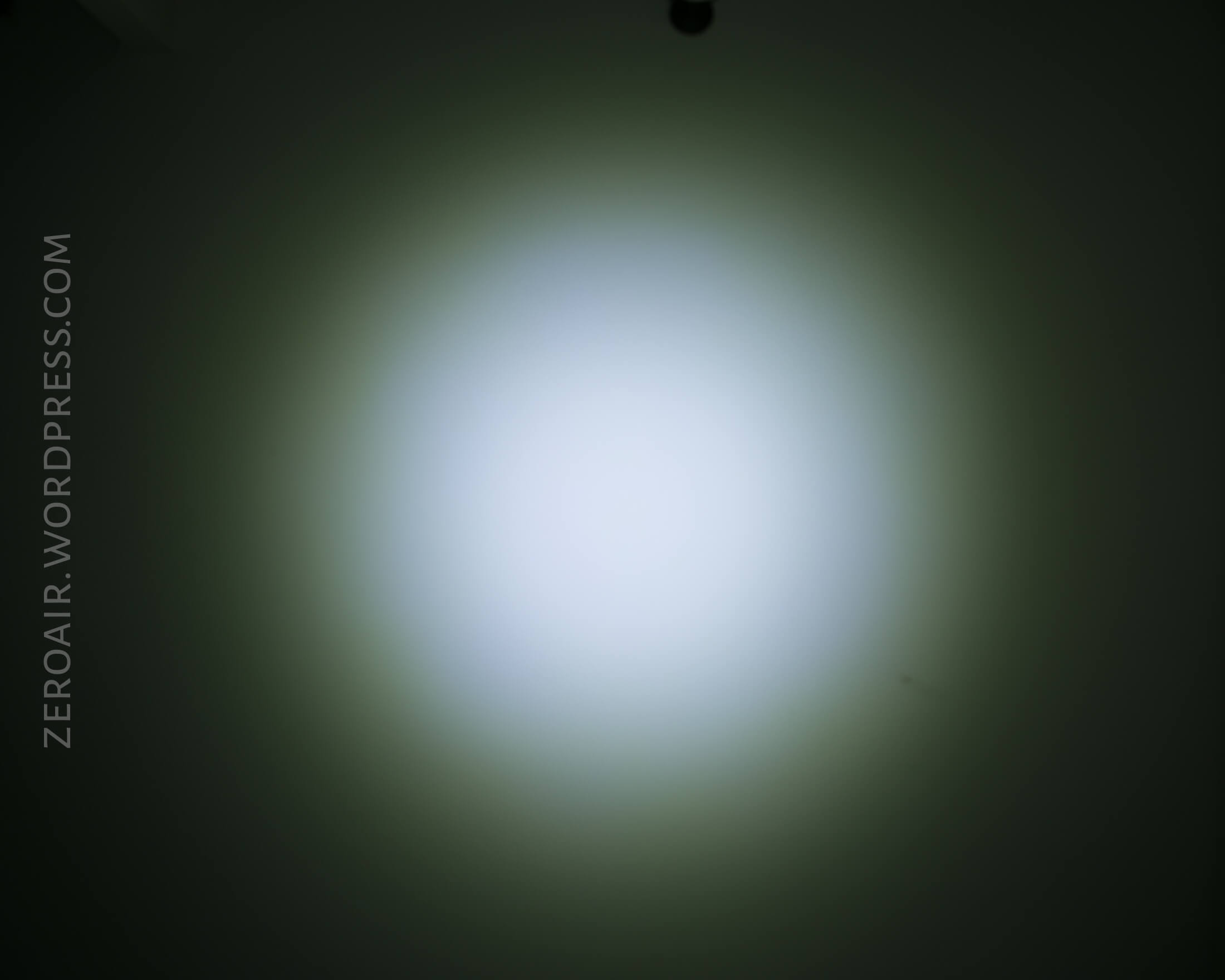 The emitters Wuben uses here are three Cree XP-G3.  They are behind a clear optic, and the white MCPCB can be seen clearly.  (I say that specifically because for whatever reason, it’s a very fetching front.)  XP-G3’s aren’t known for their great tint, and this is no exception.  There’s a lot of green, and compared to other tints I do like, this one isn’t great.