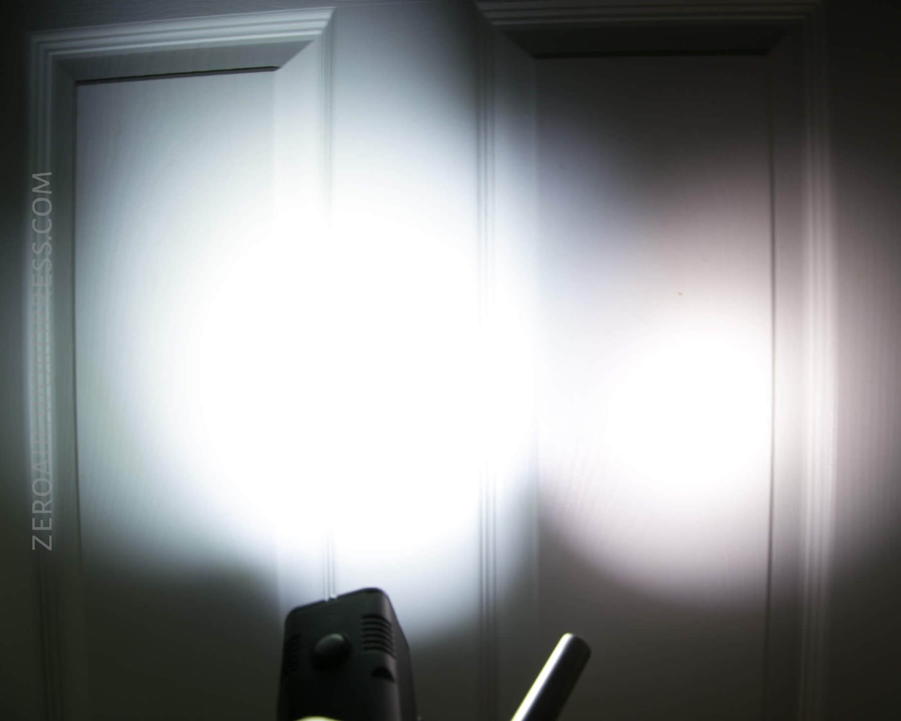 Here’s the test light with the venerable Convoy S2+. Mine’s a custom “baked” edition Nichia 219b triple. A very nice 18650 light.