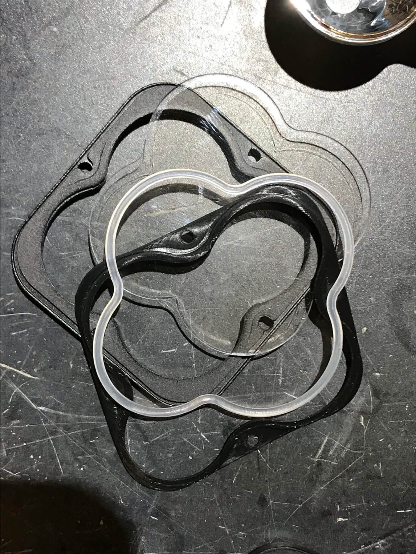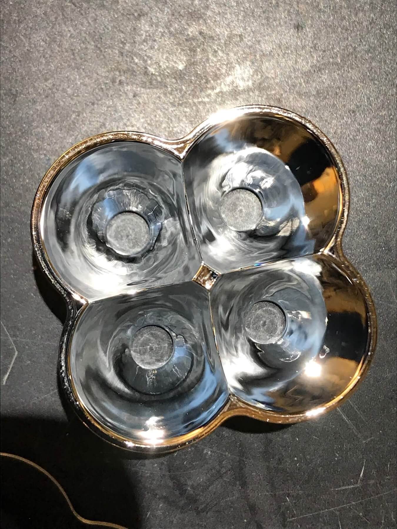 The bezel has a black custom gasket underneath. Once those two parts are removed, the reflector doesn’t just fall right out. It’s held in place with a custom clear o-ring. That took some persuasion, but a fine point to lift it worked perfectly. After that’s gone, the reflector comes right out.
