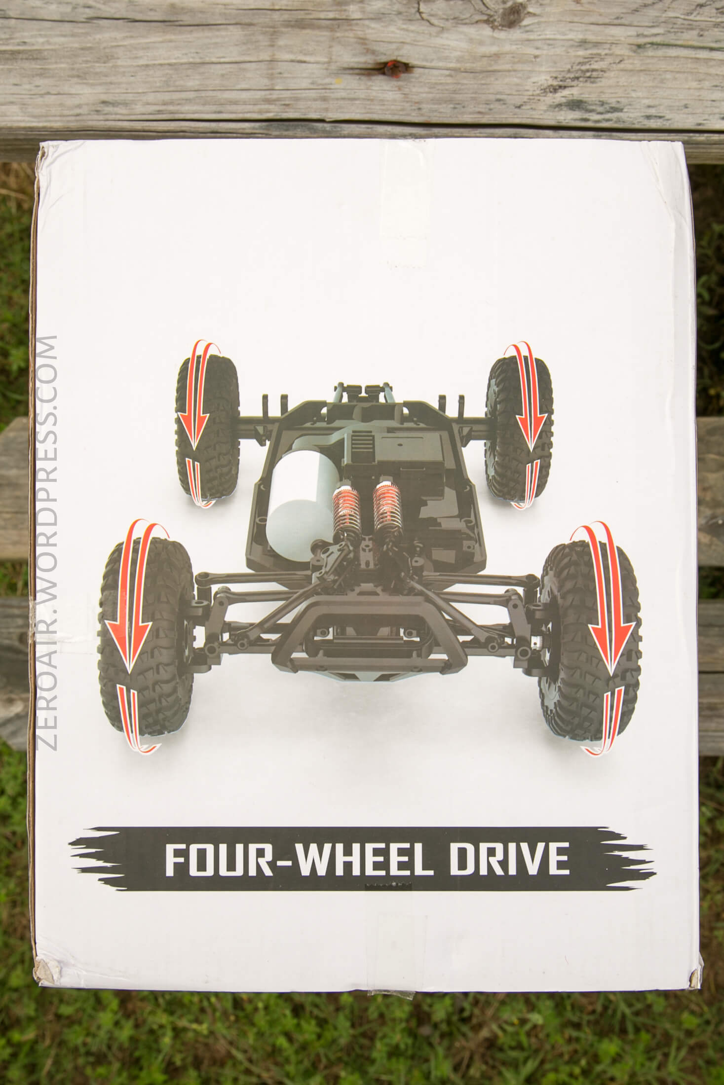 The box is simple cardboard but highly printed. There’s a photo of the red colorway on one side, and the blue colorway on the other. One short end has the undercarriage, and on the other end, the controller.