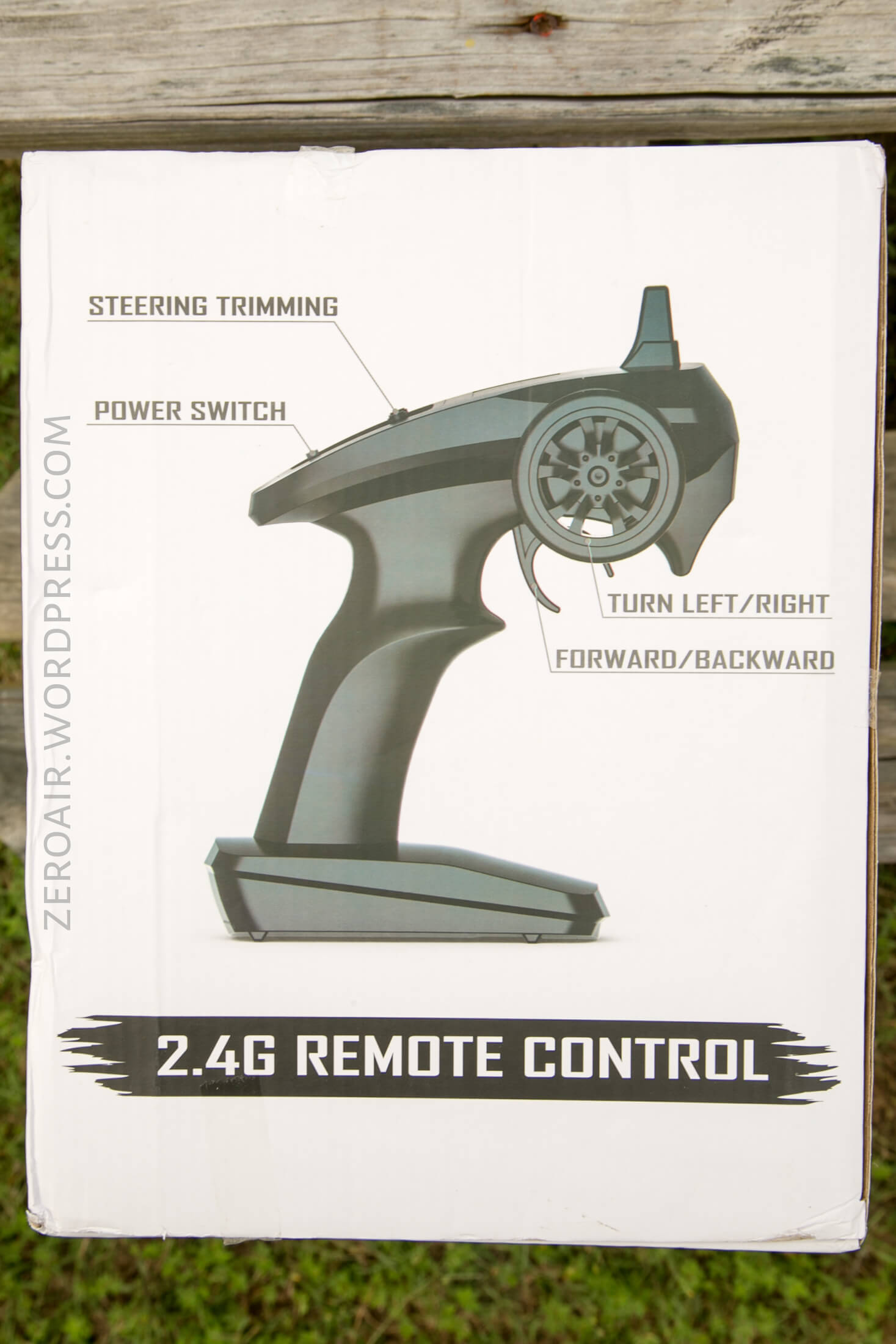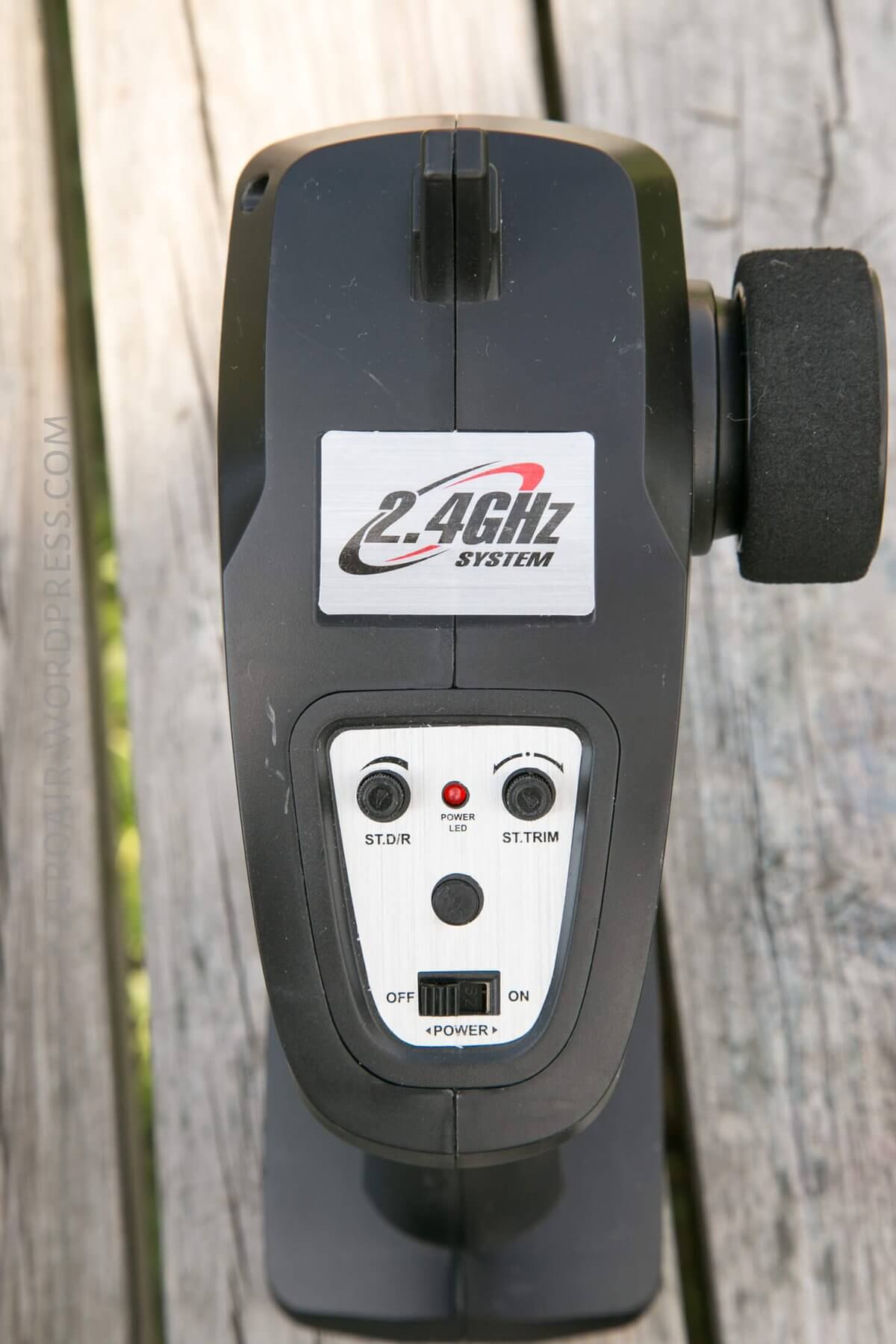 A controller is included. It’s a 2.4GHz system, with a trigger for speed and a wheel for direction. It’s possible to adjust the trim of the wheels, but mine was already perfect.