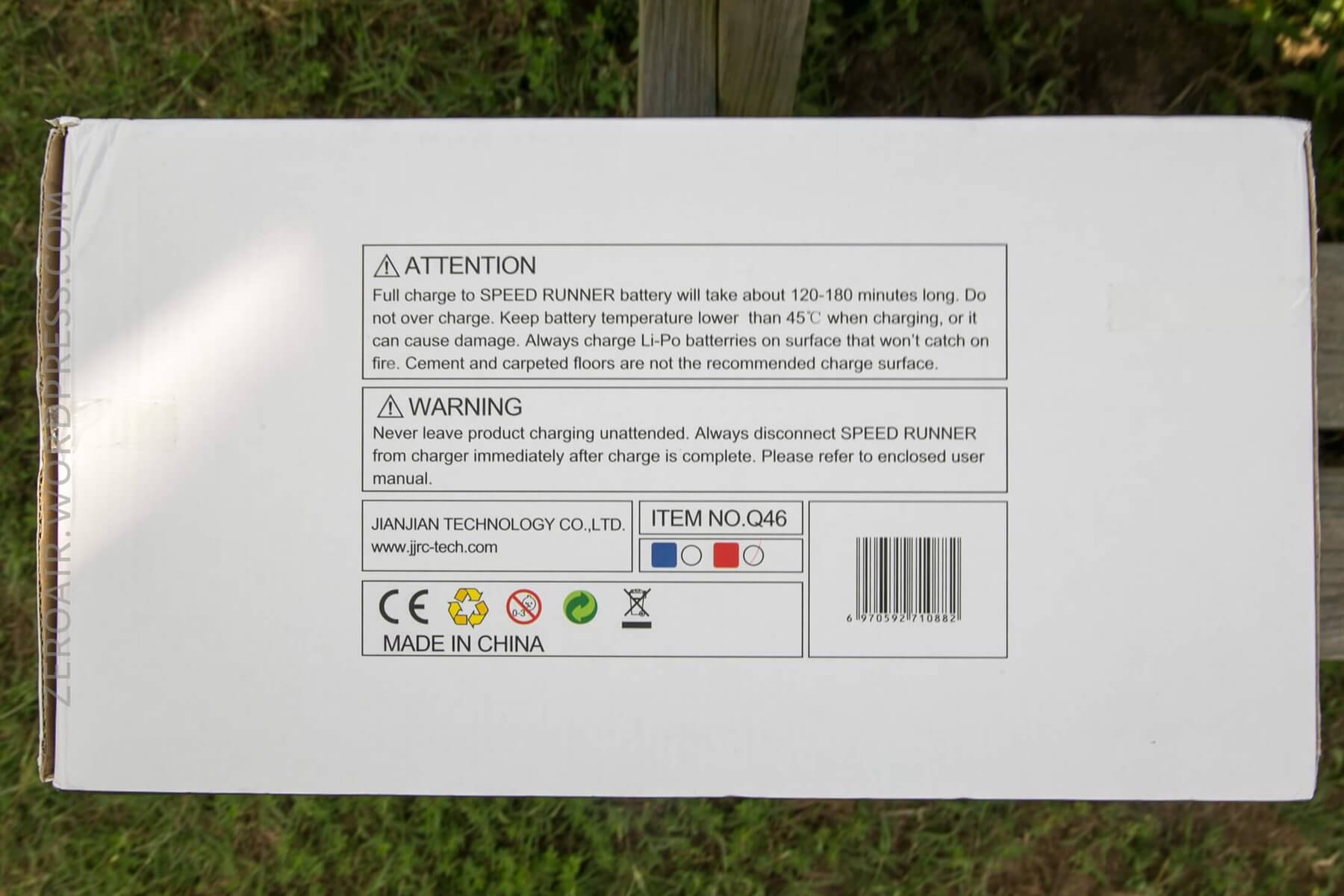 JJRC includes one battery for powering the Q46. It’s a 3000mAh 7.4V 20C LiPo, and claims to allow 9 minutes of runtime, and requires a 2.5-hour chargetime. Nine minutes isn’t a long runtime, that’s for certain, so it’ll be worthwhile to grab a few spares and keep them charging while playing with the Q46!