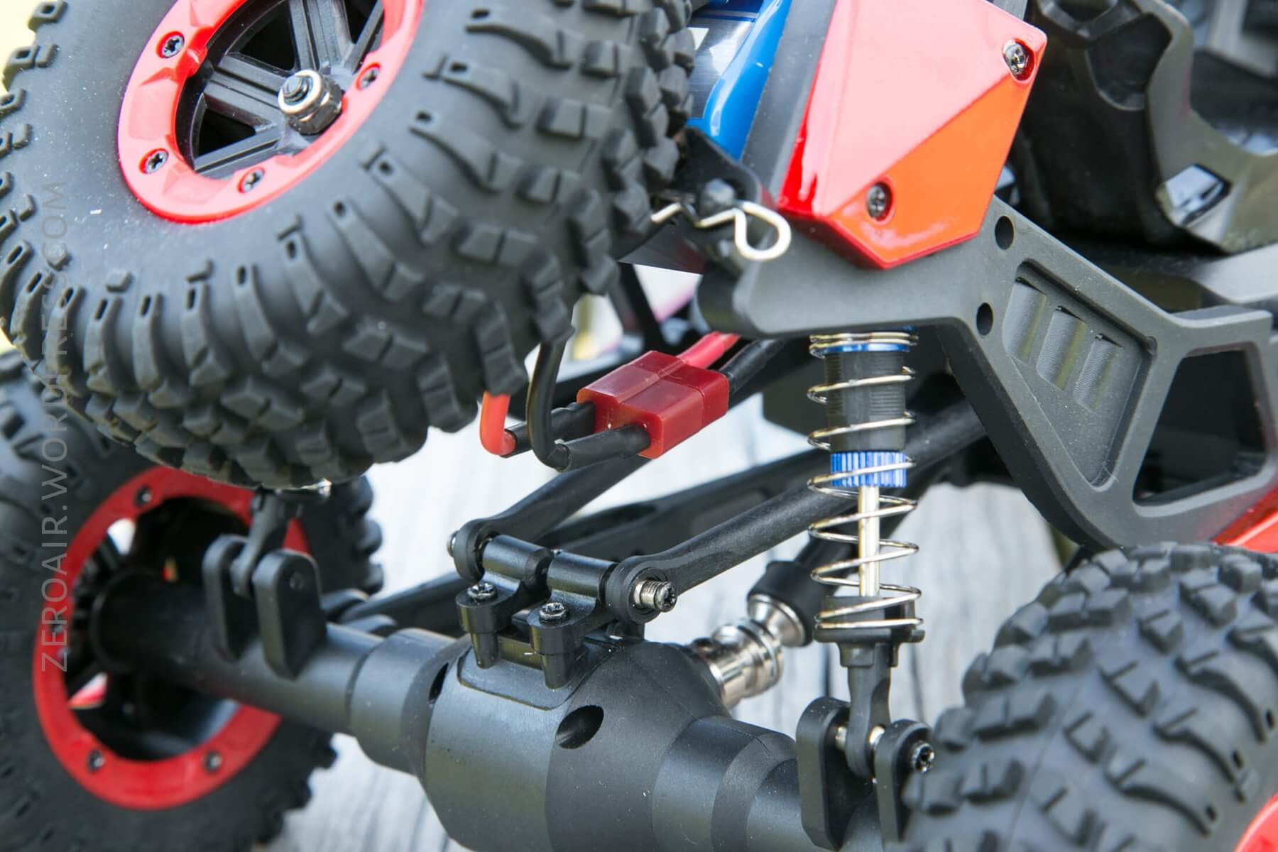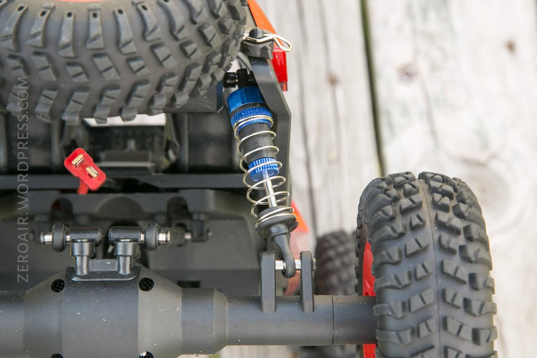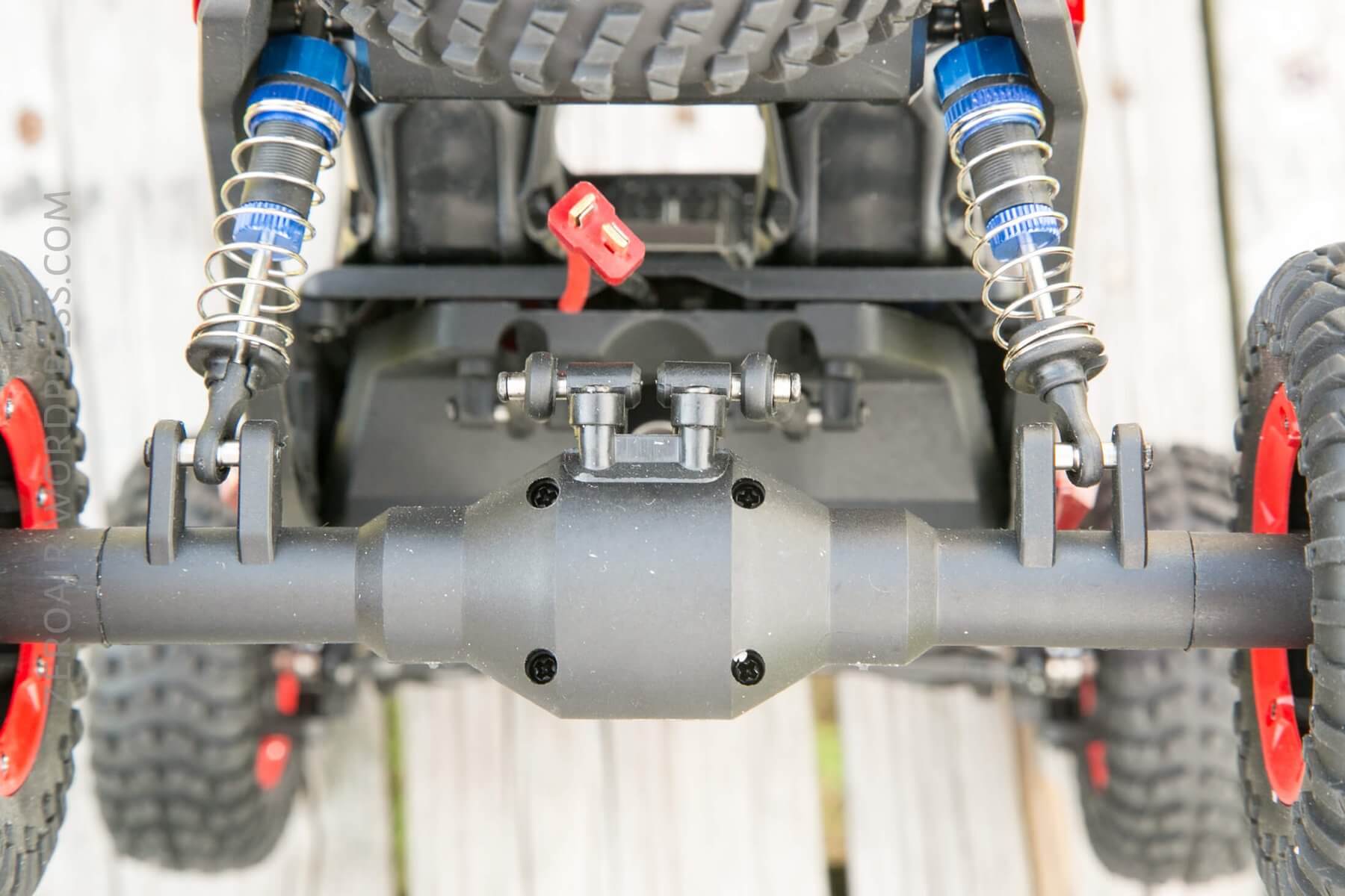 The undercarriage is legitimately well built, with a proper metal skid plate. Most of the other parts are plastic, though. A few high-stress contact points are metal – much of the drivetrain is metal, for example.