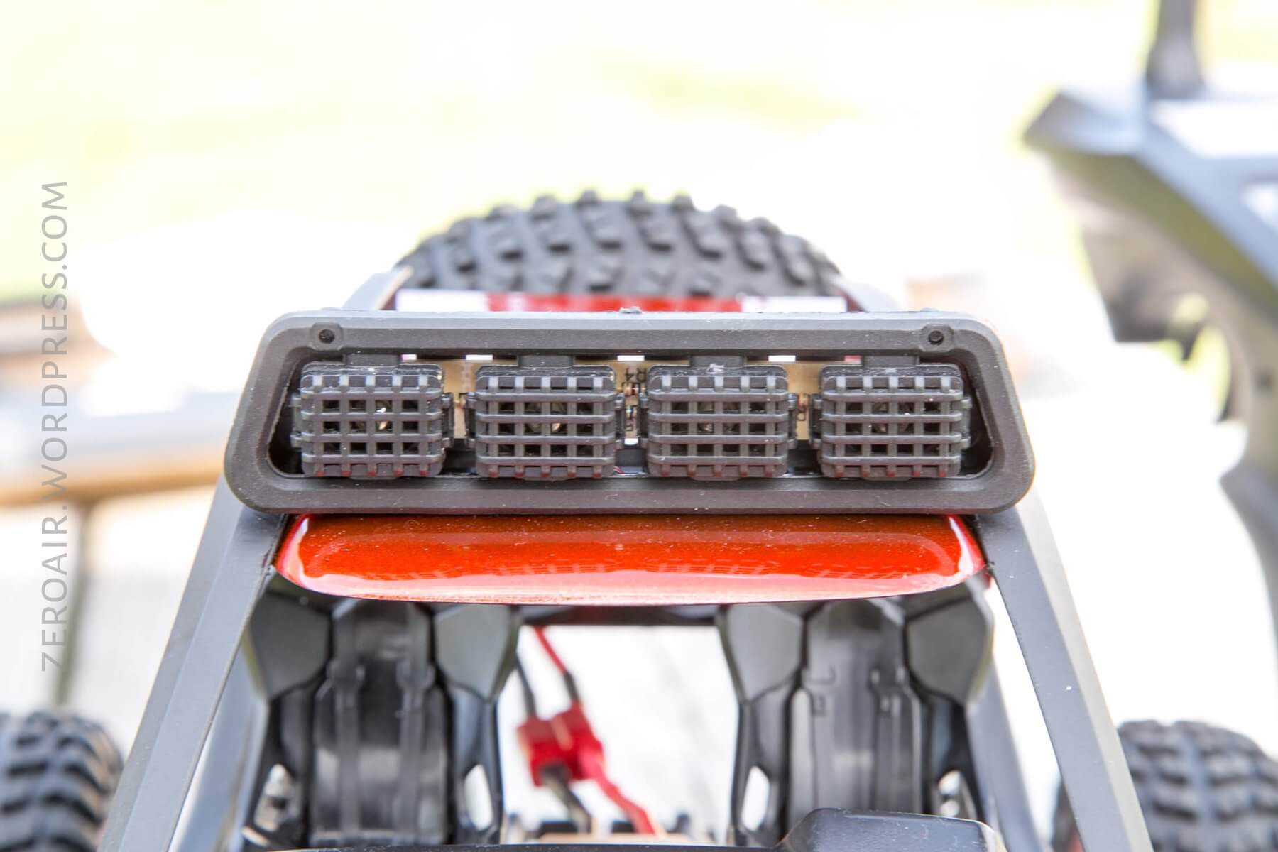 Here’s a shot of the trunk open. The battery holder is very specifically sized, and I don’t think you’ll fit much more than this 2S LiPo in there.