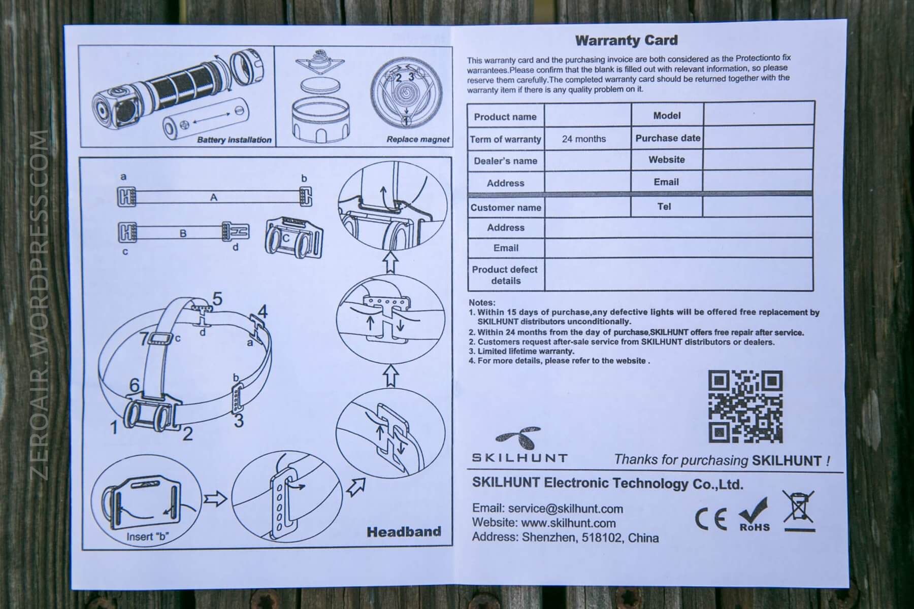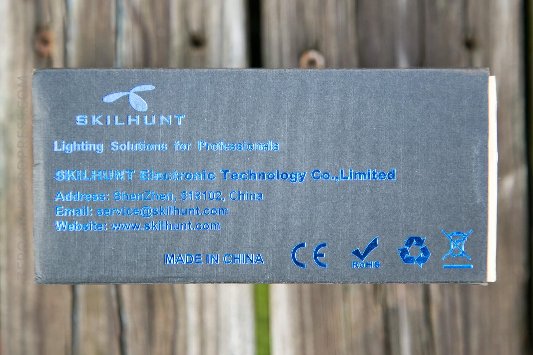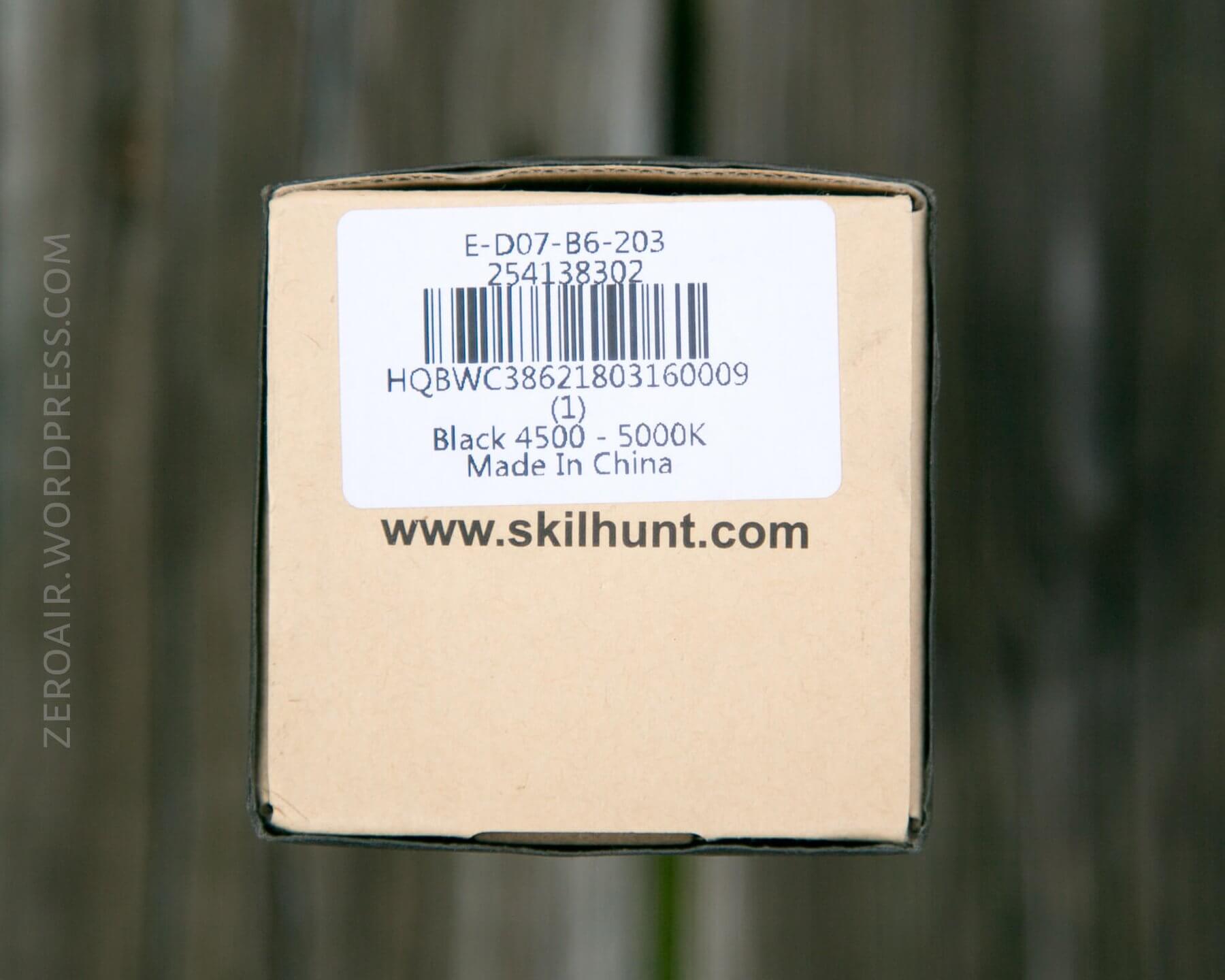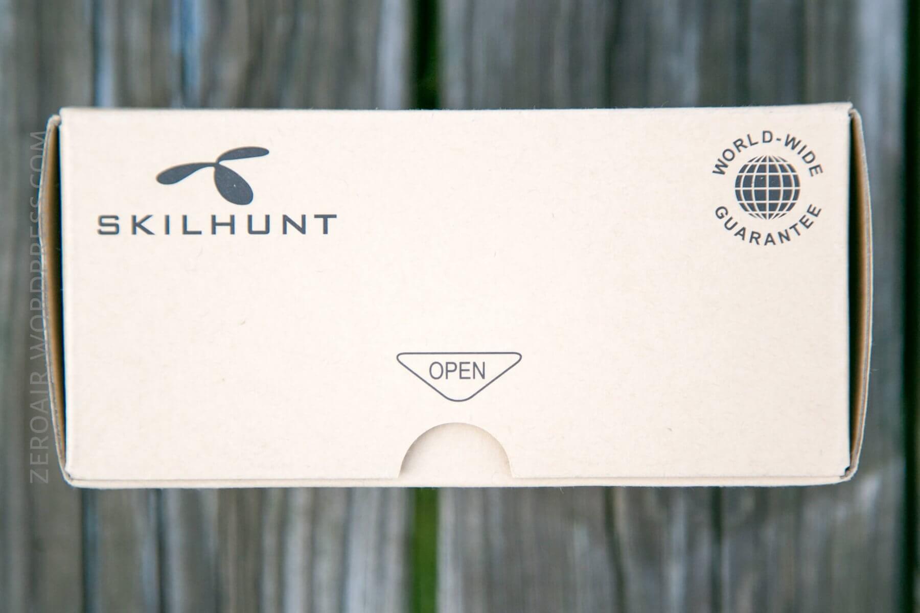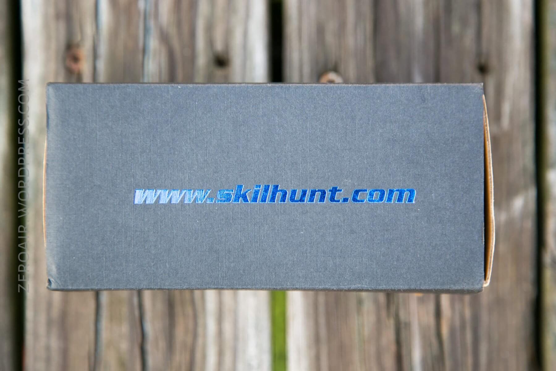 Skilhunt uses a nice cardboard box, which is covered in a slip-over, embossed sleeve.