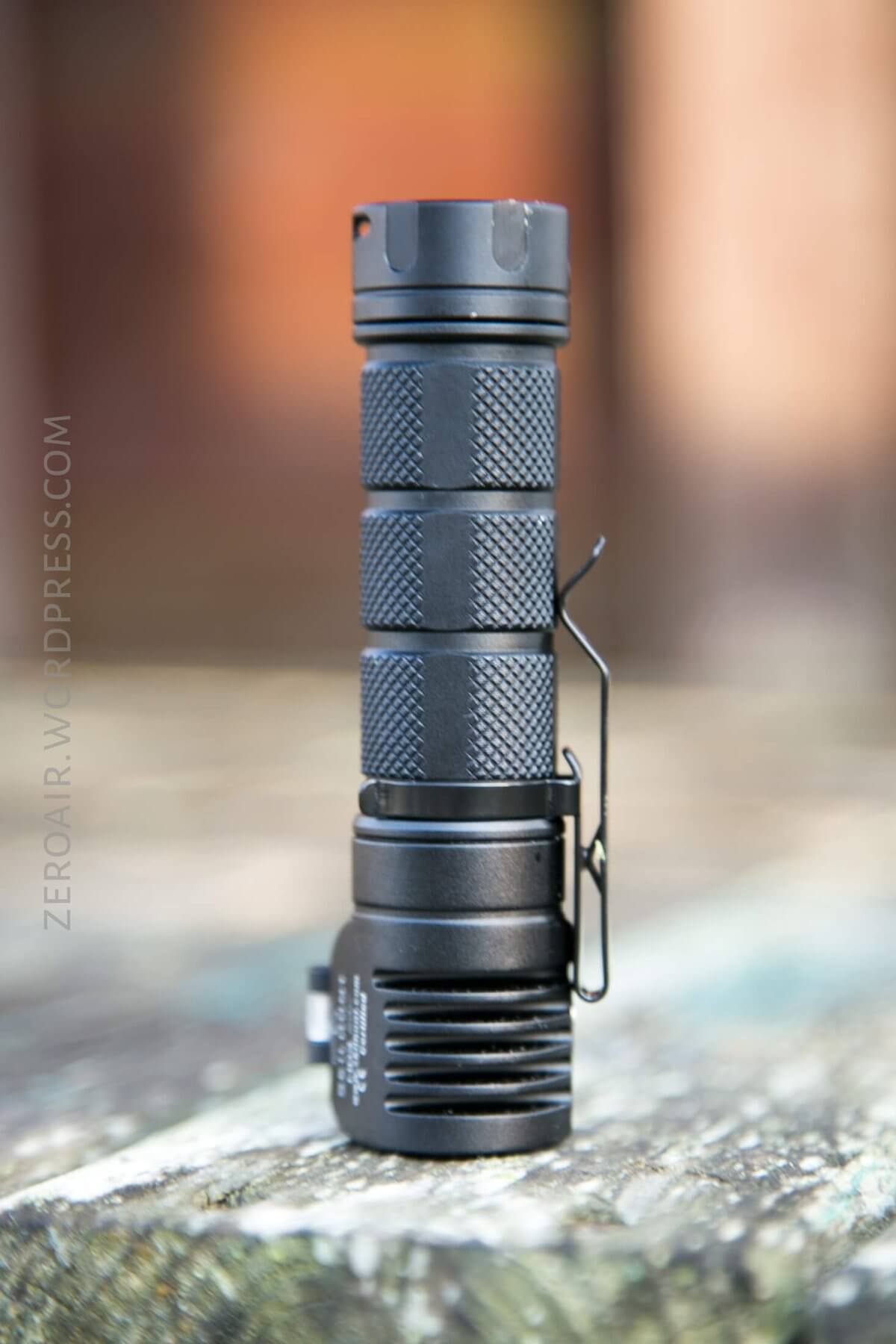 The anodizing has held up to all of my use and carry, and is still flawless. The corners are rounded enough that the anodizing doesn’t get damaged or chipped easily. The head has a few deep fins directly behind the emitter.
