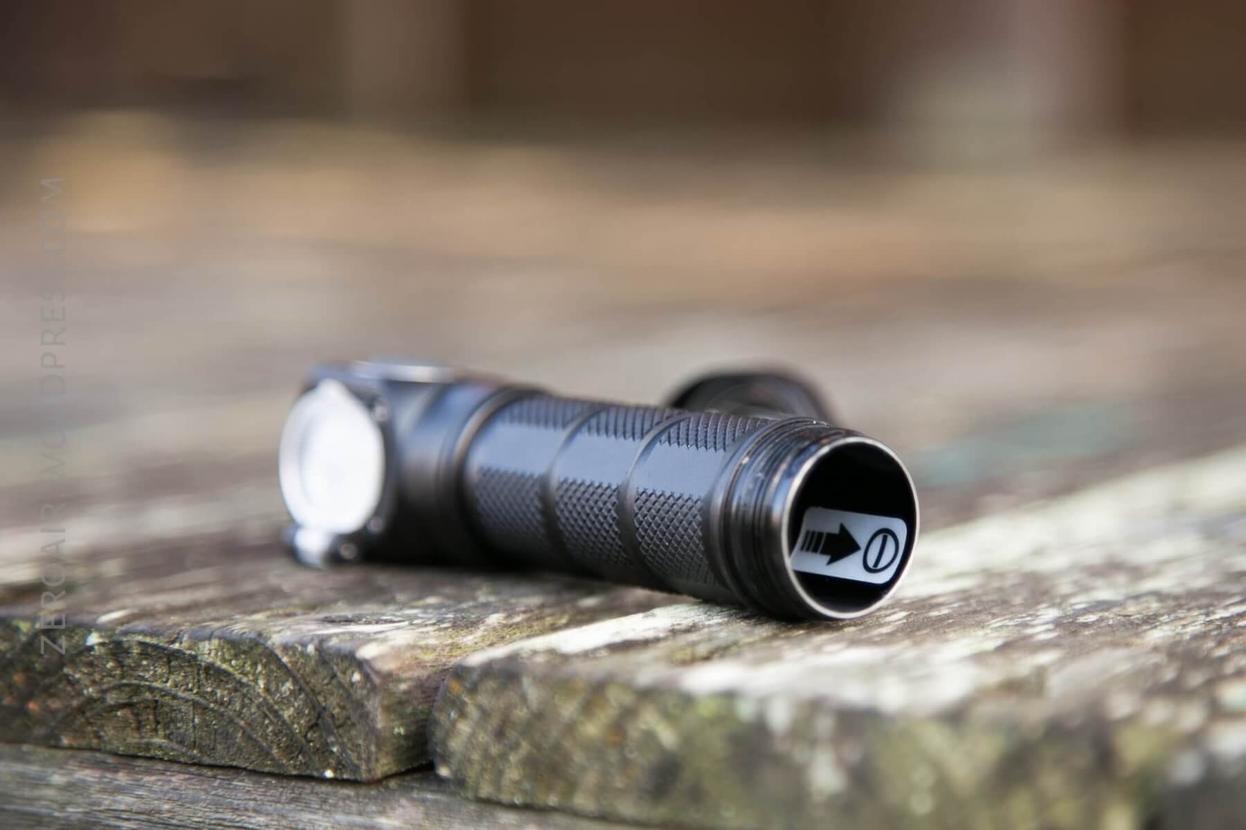 The H03F RC is powered primarily by a single 18650. Since there are springs on the head and tail, any type of 18650 (flat/button, protected/unprotected) will work. There’s a sticker just inside the tube to indicate cell direction. (And like most lights, the cell direction is “positive toward head.”)