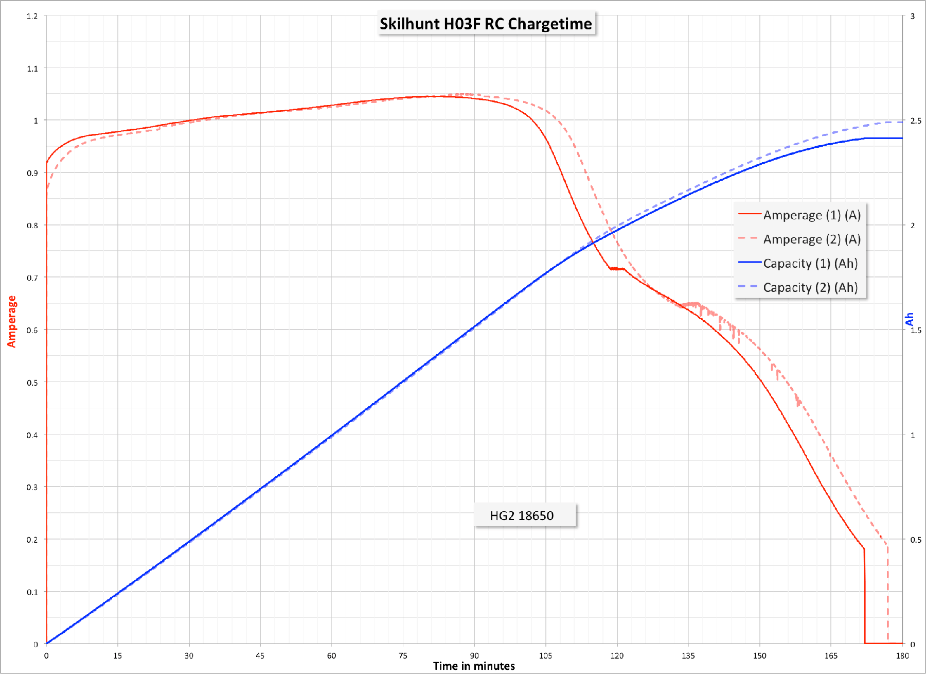The charge graph looks strange – CC rises constantly through the cycle and then isn’t an abrupt switch to CV as you’d normally (and hope) to see. Still, the cell isn’t overcharged, and it is charged consistently (two tests, below). Those are 2.86 to 4.19V and 3.11 to 4.20V. So it’s good charging.