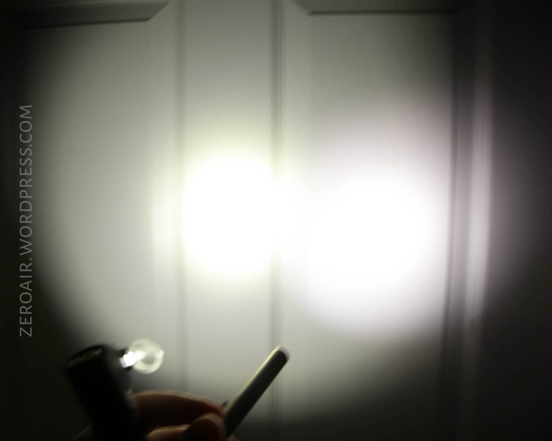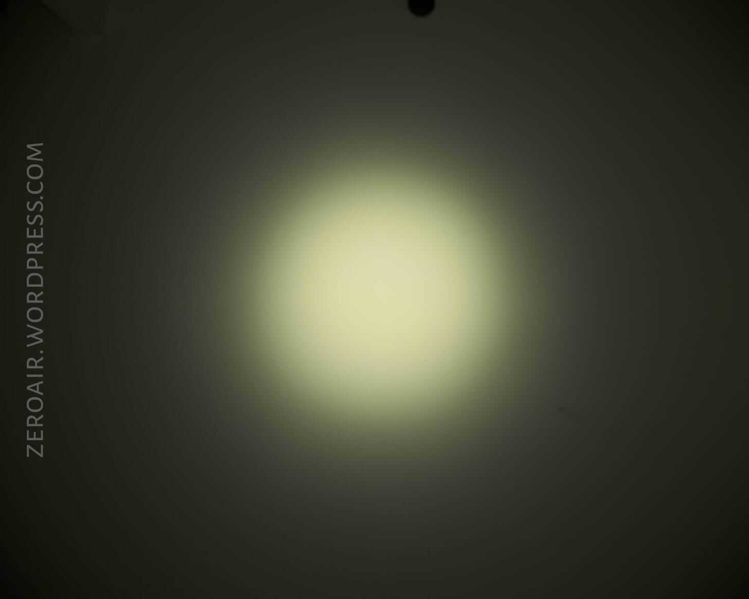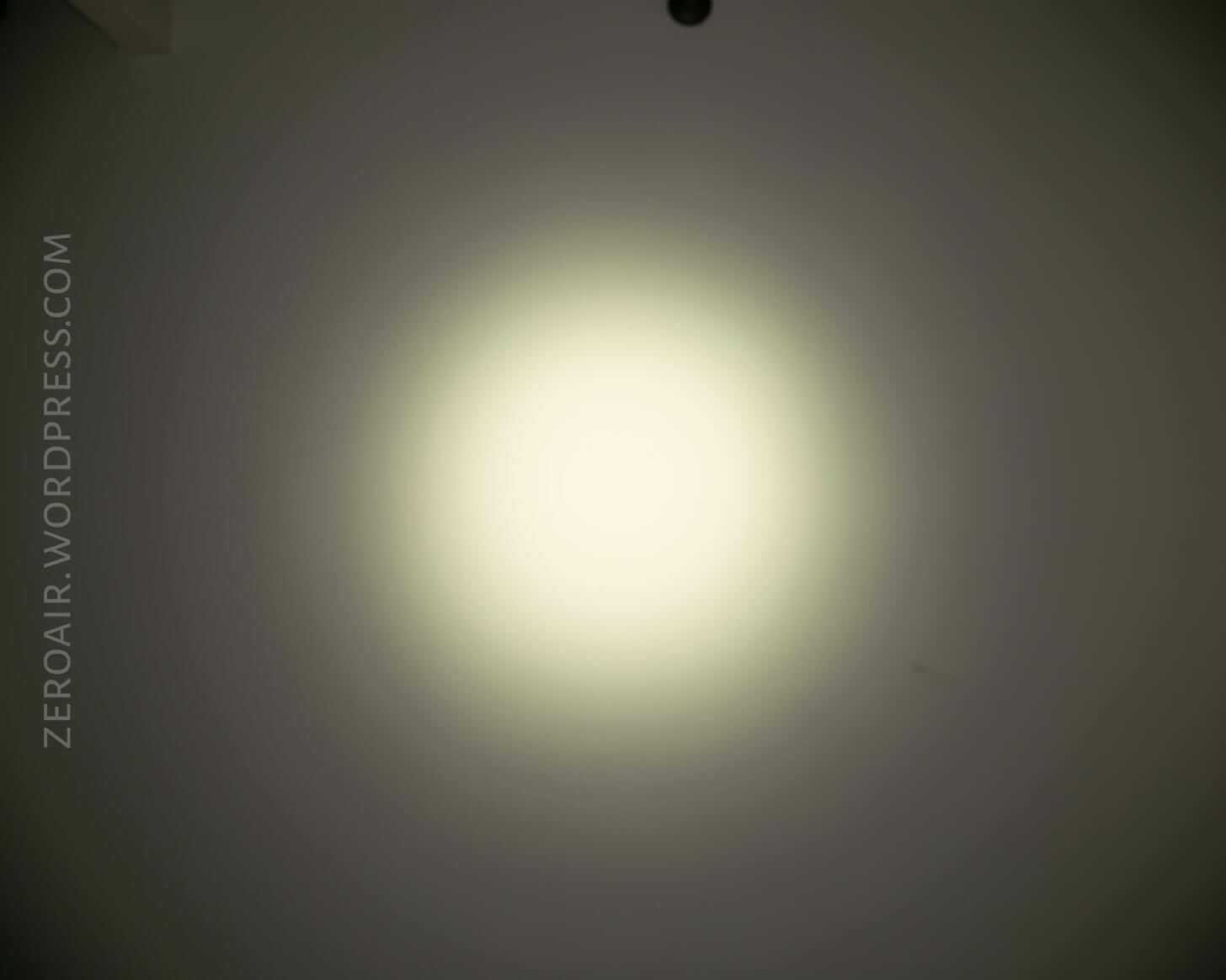 The beam without the diffuser is a fairly tight spot, but with a lot of spill. The diffuser hinge is visible in the beam profile, but not in the deal-breaker type way. (Anyway, if you didn’t want that, there are other versions of this light better suited to your needs.)
