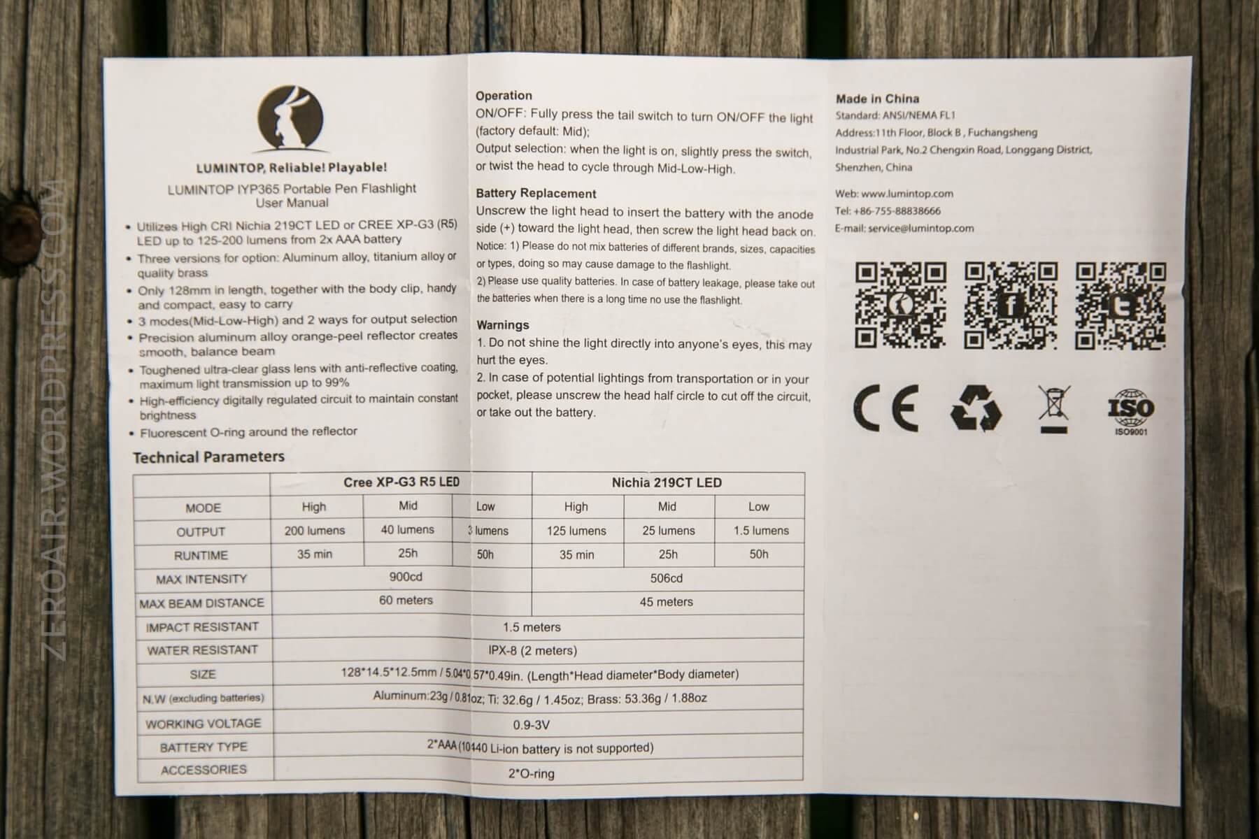 The manual is more standard-fare for Lumintop. It’s complete and good enough. Again, no photos of the product.