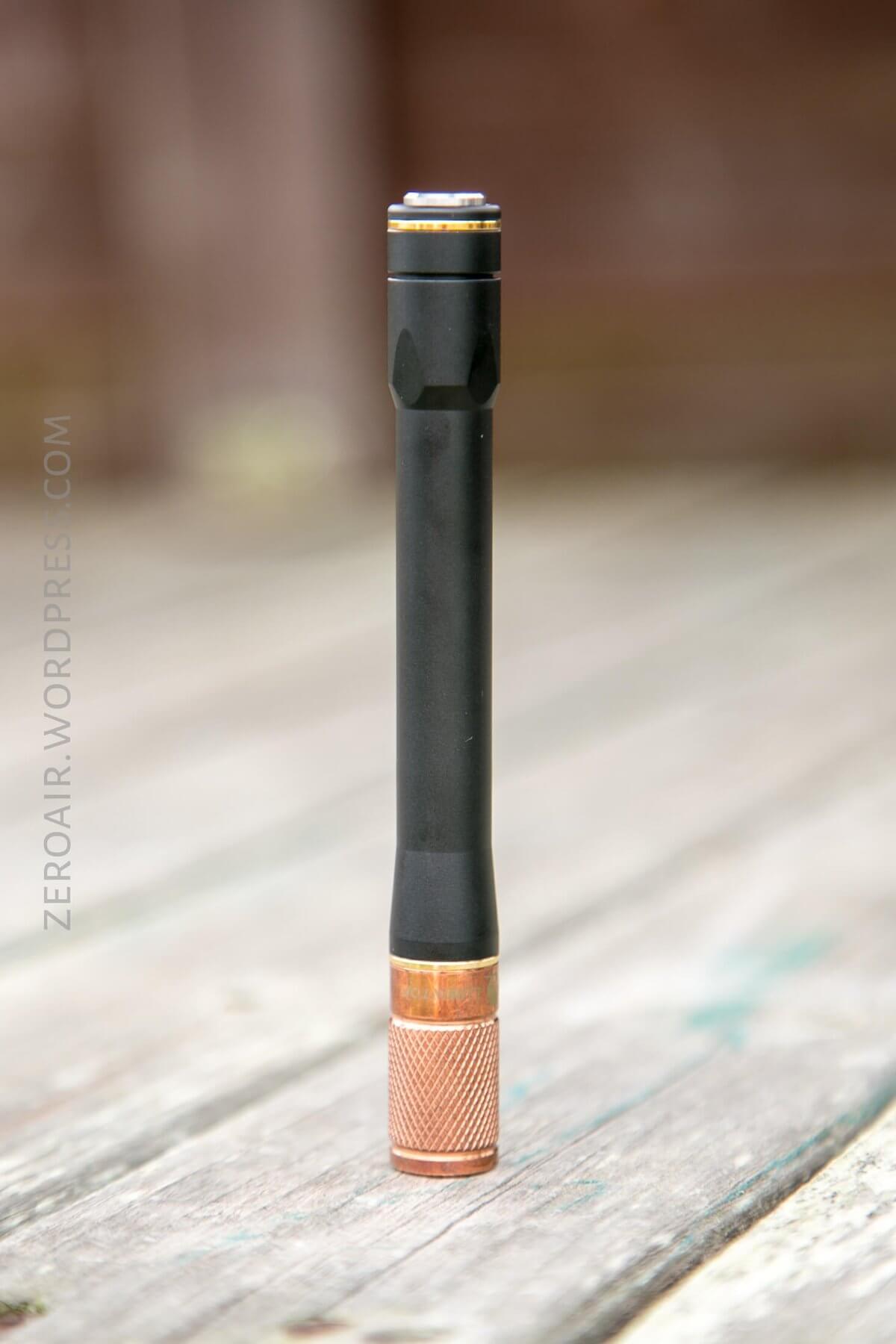 There are a few versions of this penlight. There’s black aluminum with Nichia (seen here). There’s also: silver aluminum, pink aluminum, brass, and titanium. Some combinations of those are available with Nichia and Cree.