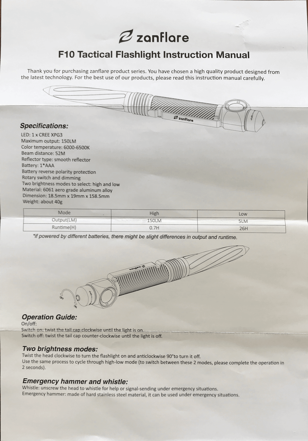 Zanflare F10 Tactical Pen Flashlight Review