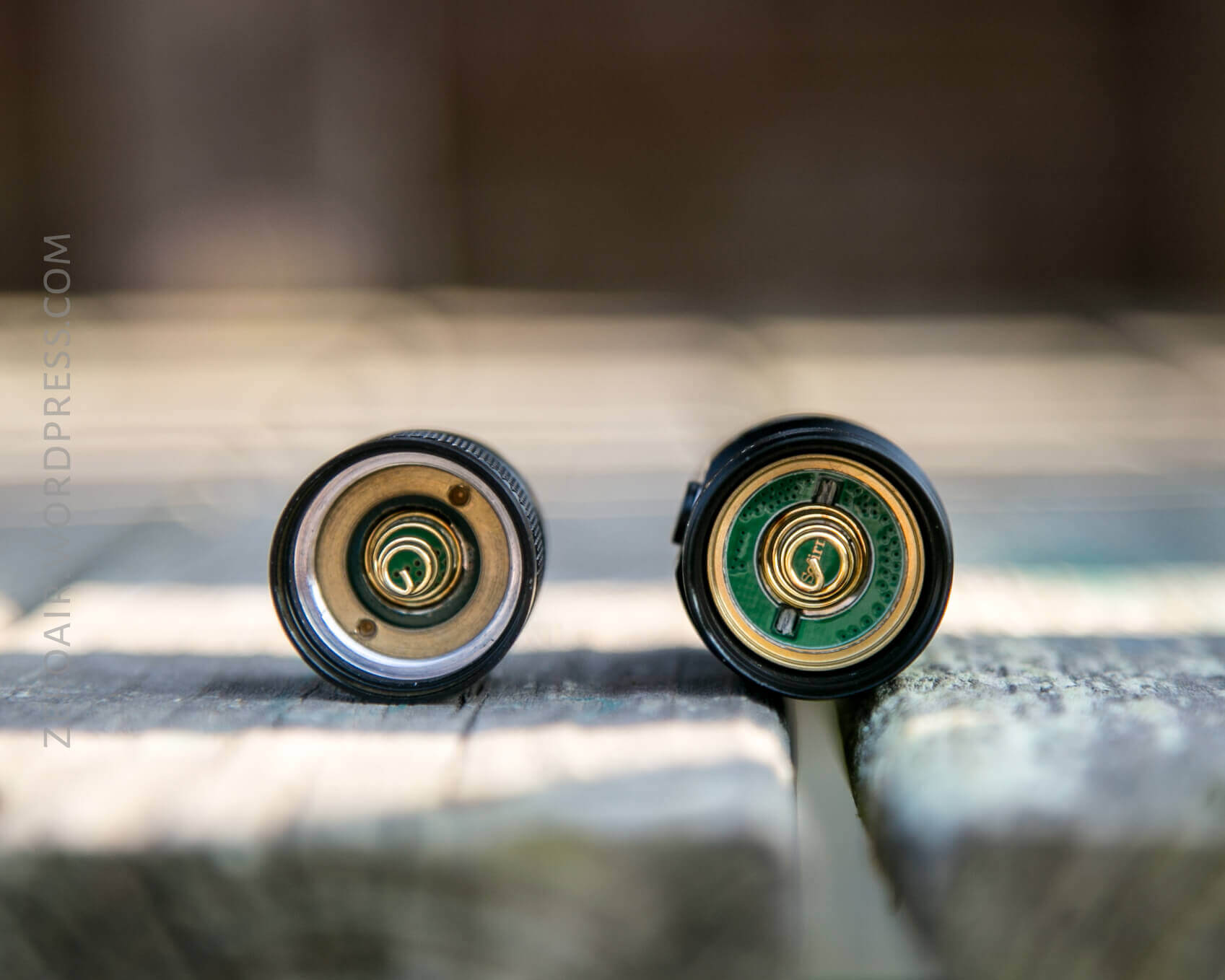 Both head and tail have thick springs, and the MCPCB is Sofirn branded. The tail switch is held together by a brass retaining ring, which has indents for easy removable and maintenance of parts.