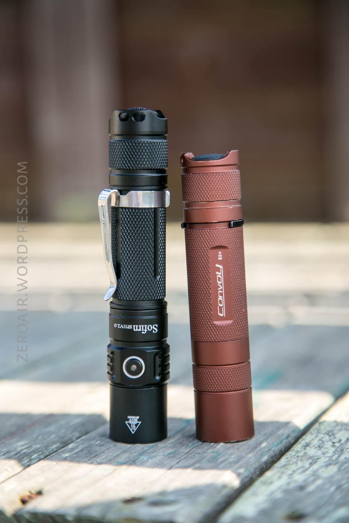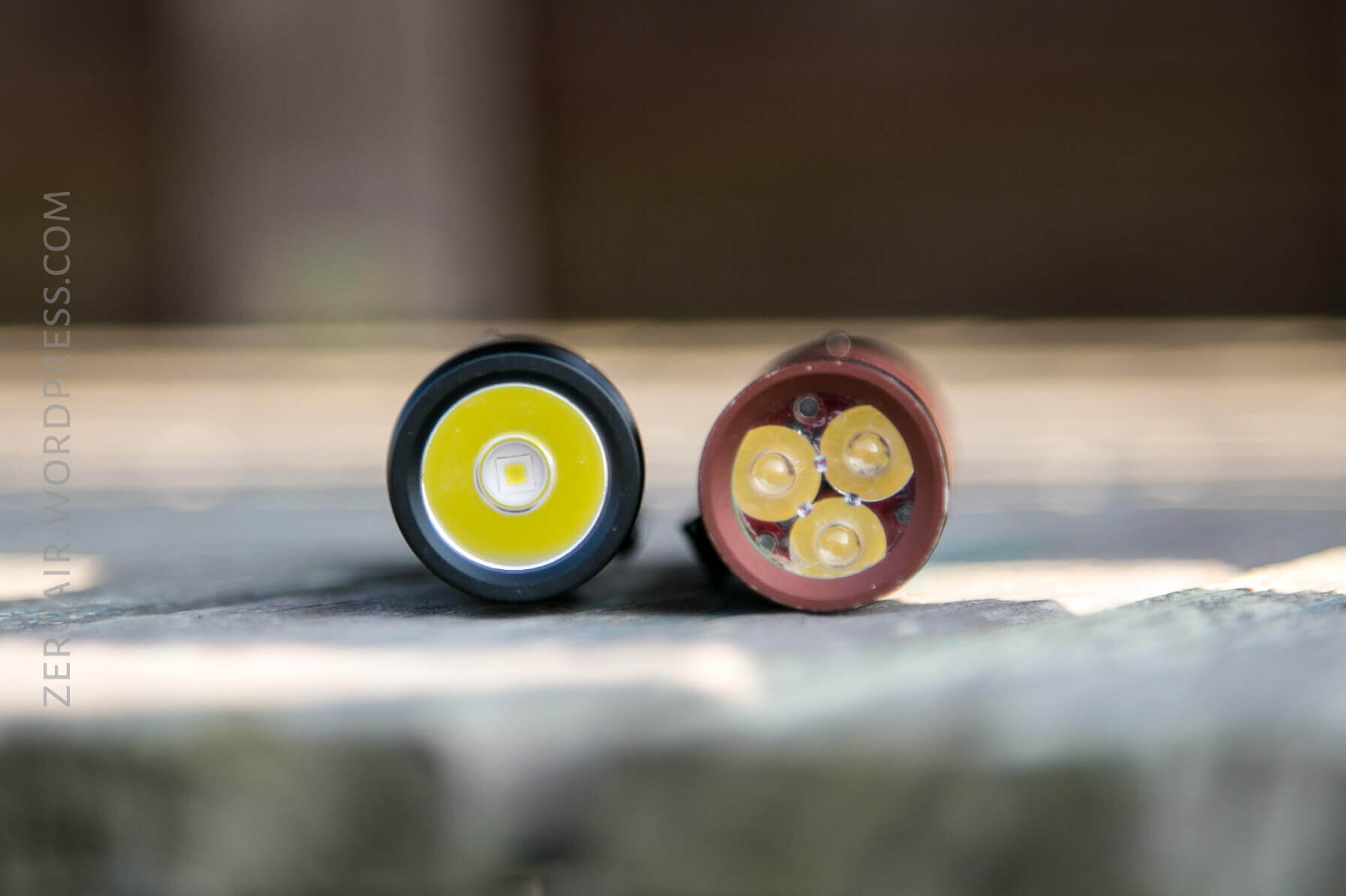 This light is much longer than the Convoy S2+, unfortunately. Here’s the test light with the venerable Convoy S2+. Mine’s a custom “baked” edition Nichia 219b triple. A very nice 18650 light.