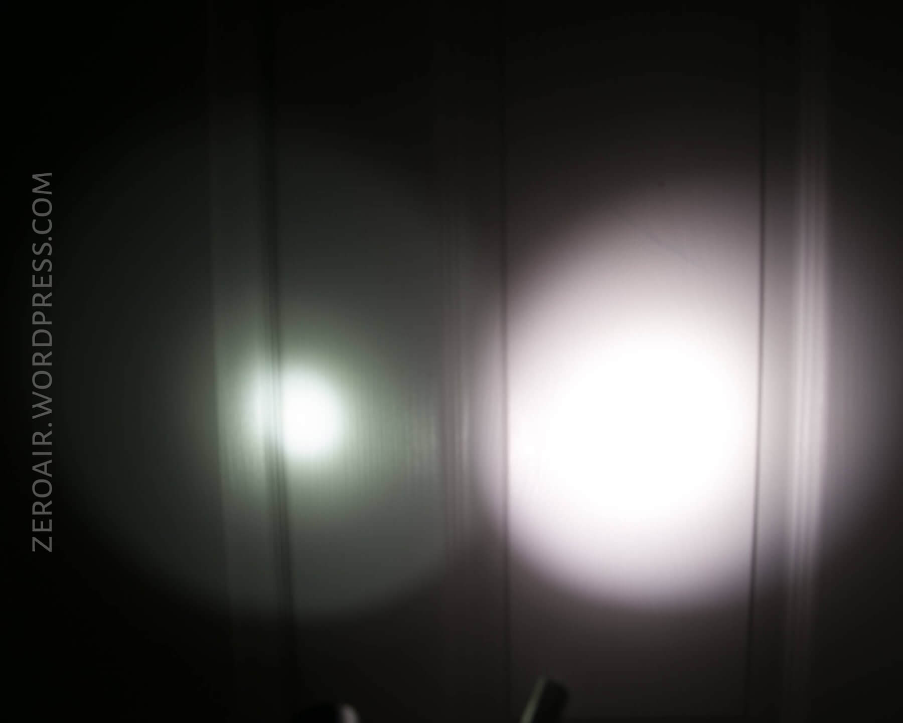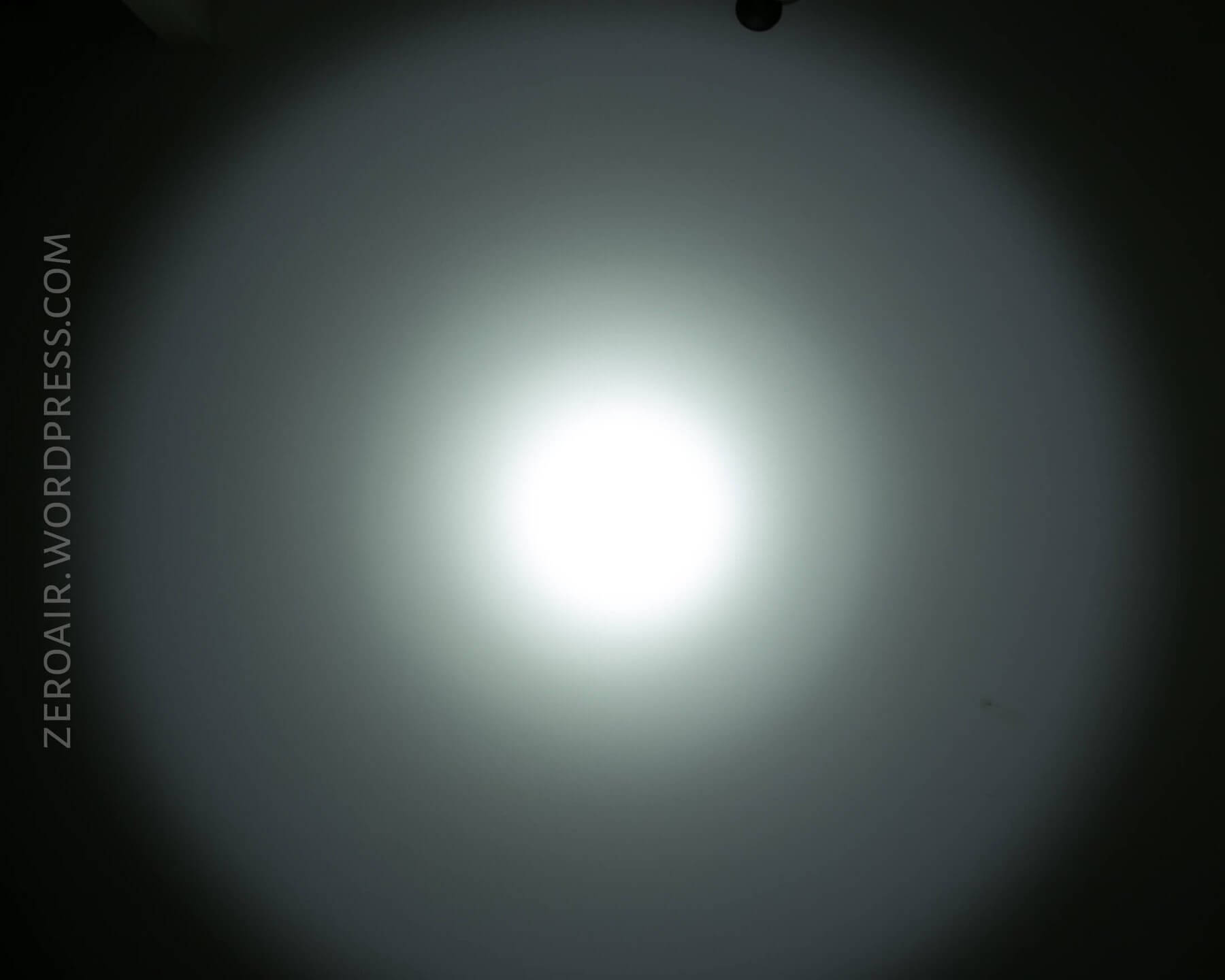 Sofirn puts a Cree XP-L HI in this light. The reflector is smooth and fairly shallow. The beam profile is mostly spot, but on higher modes, a little spill is noticeable.