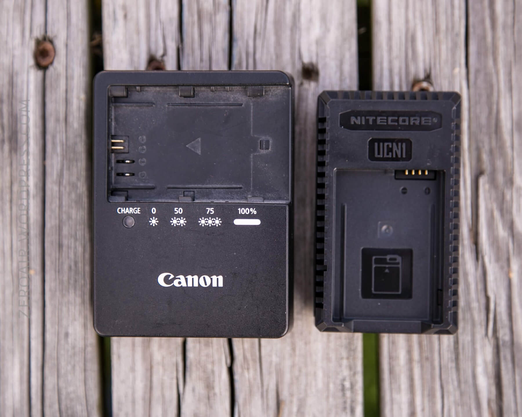 This charger is very convenient. I like that it’s USB powered, but I also like the design of the Canon OEM charger (which plugs directly into the wall. It’s a fast charger, and I like the display too. It’s a very good little charger.