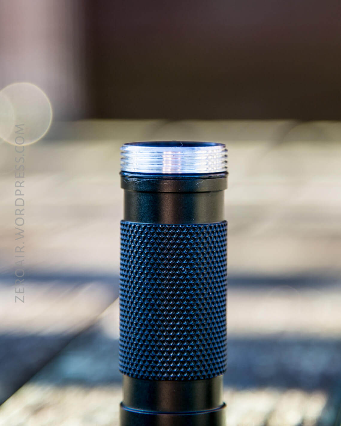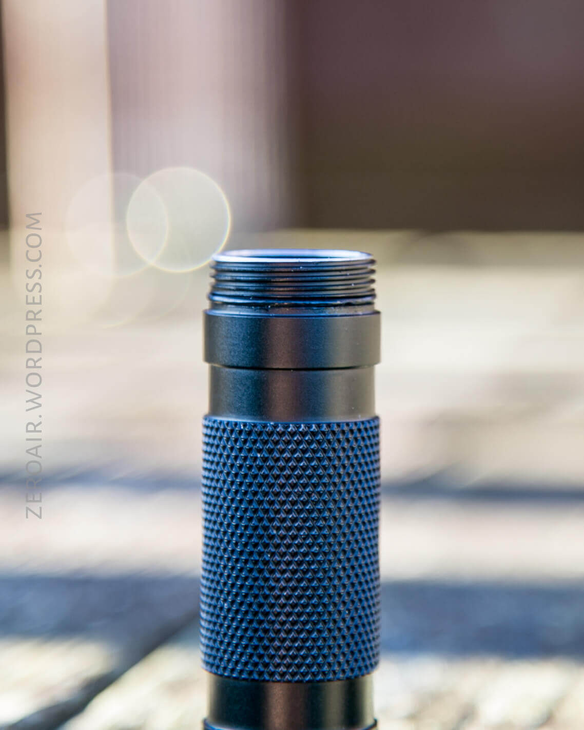 Here’s a very minor teardown, with just the head and tail off. Both come off easily. The cell tube isn’t reversible – one end has unanodized threads (head) and the other has anodized threads (tail). The anodized threads mean a physical lockout is possible by just a very short twist of the tailcap (but not the head!) Also see that those threads are big and square-cut, and very very smooth.