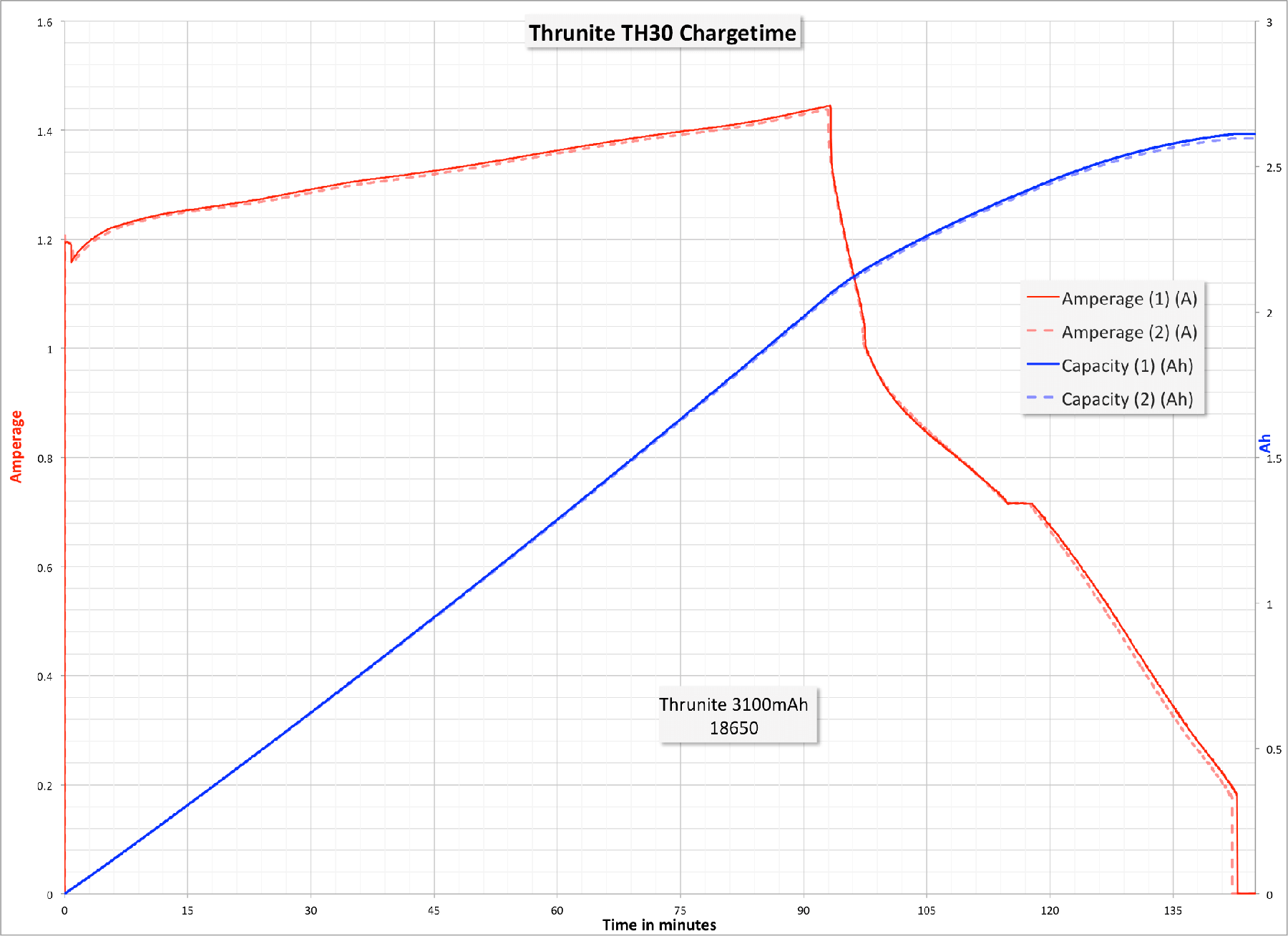 Charging works well, and the CC phase is 1.2A or over for the duration. It’s also very consistent (note that there are two tests shown below, and they’re indistinguishably similar).