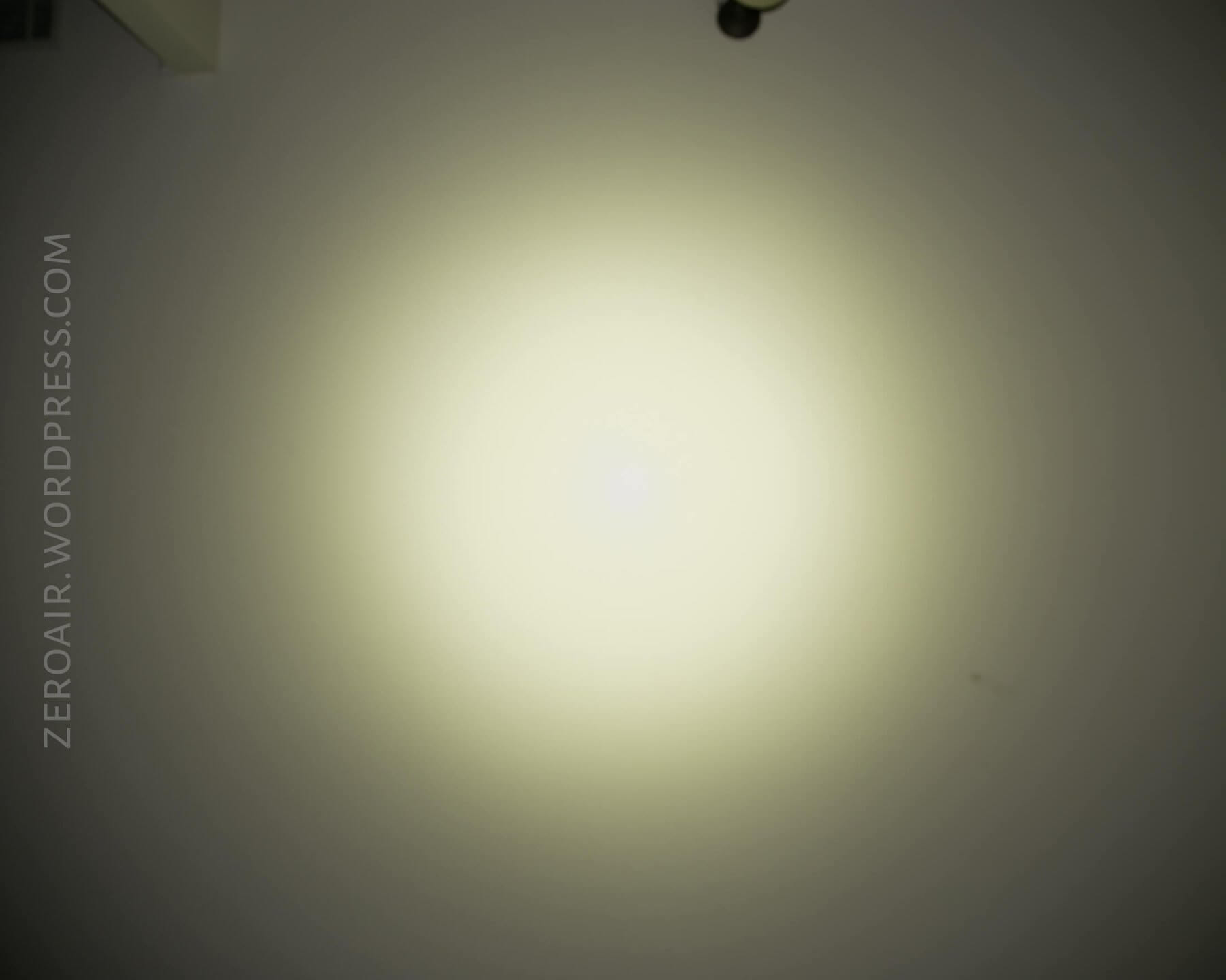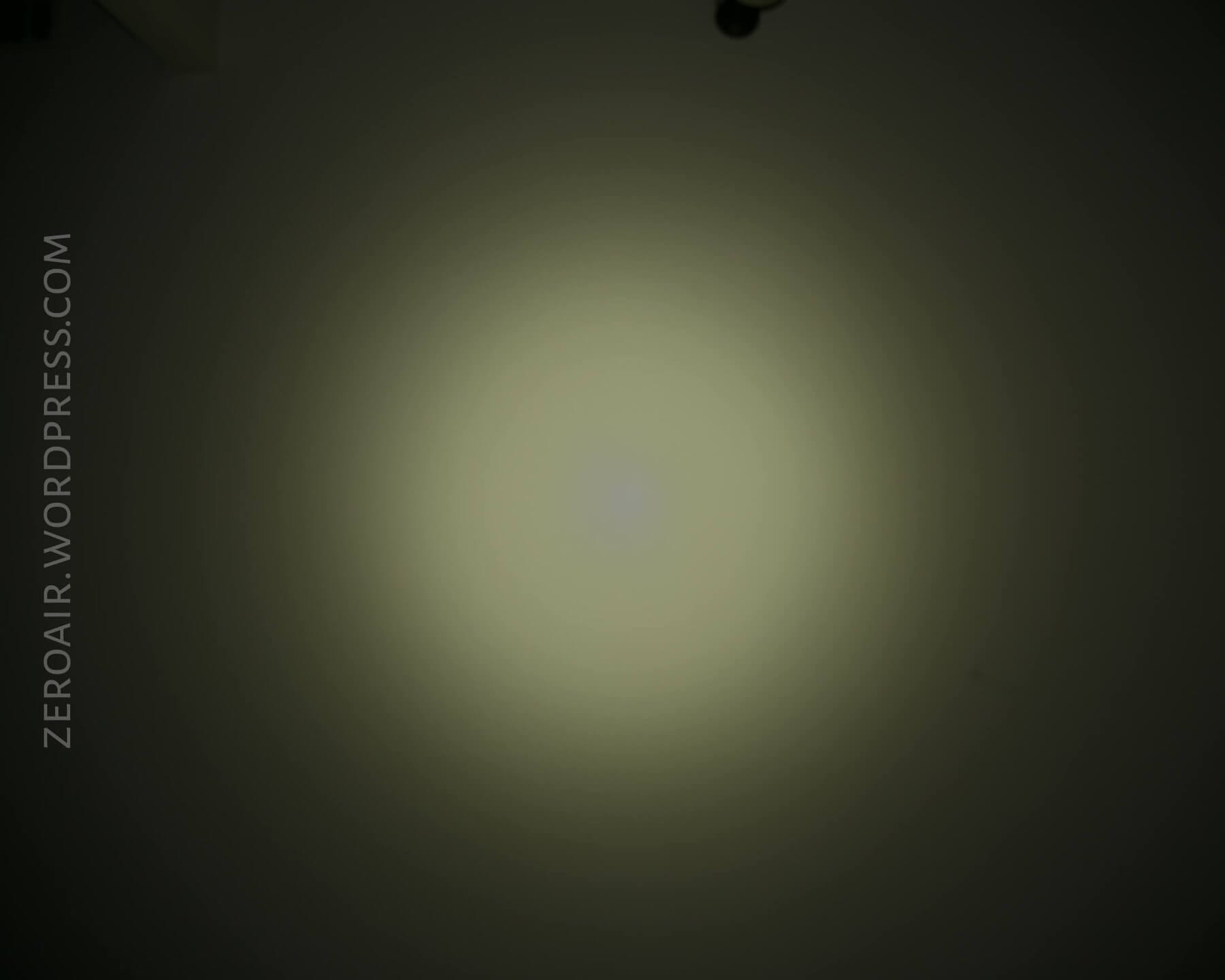 The emitter in this TH30 is a Neutral White Cree XHP70.2. The reflector is a fairly shallow orange peel reflector. There’s a bit of an artifact in the beam – a donut most people call it. It’s a blue spot in the center of the beam, with normal beam color everywhere else. The 70.2 isn’t my favorite emitter, but this one’s a good example of an NW 70.2.