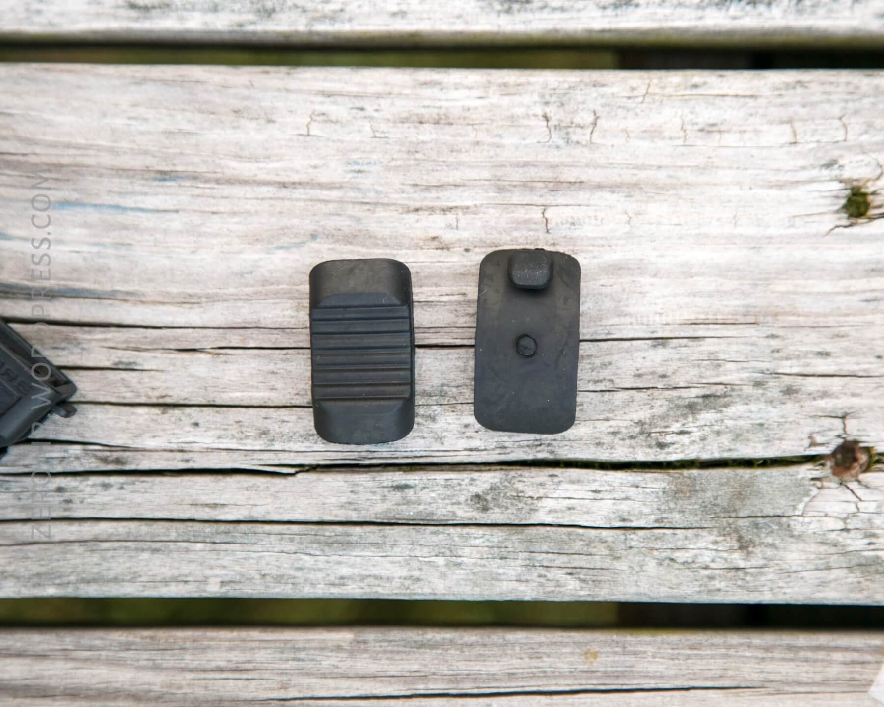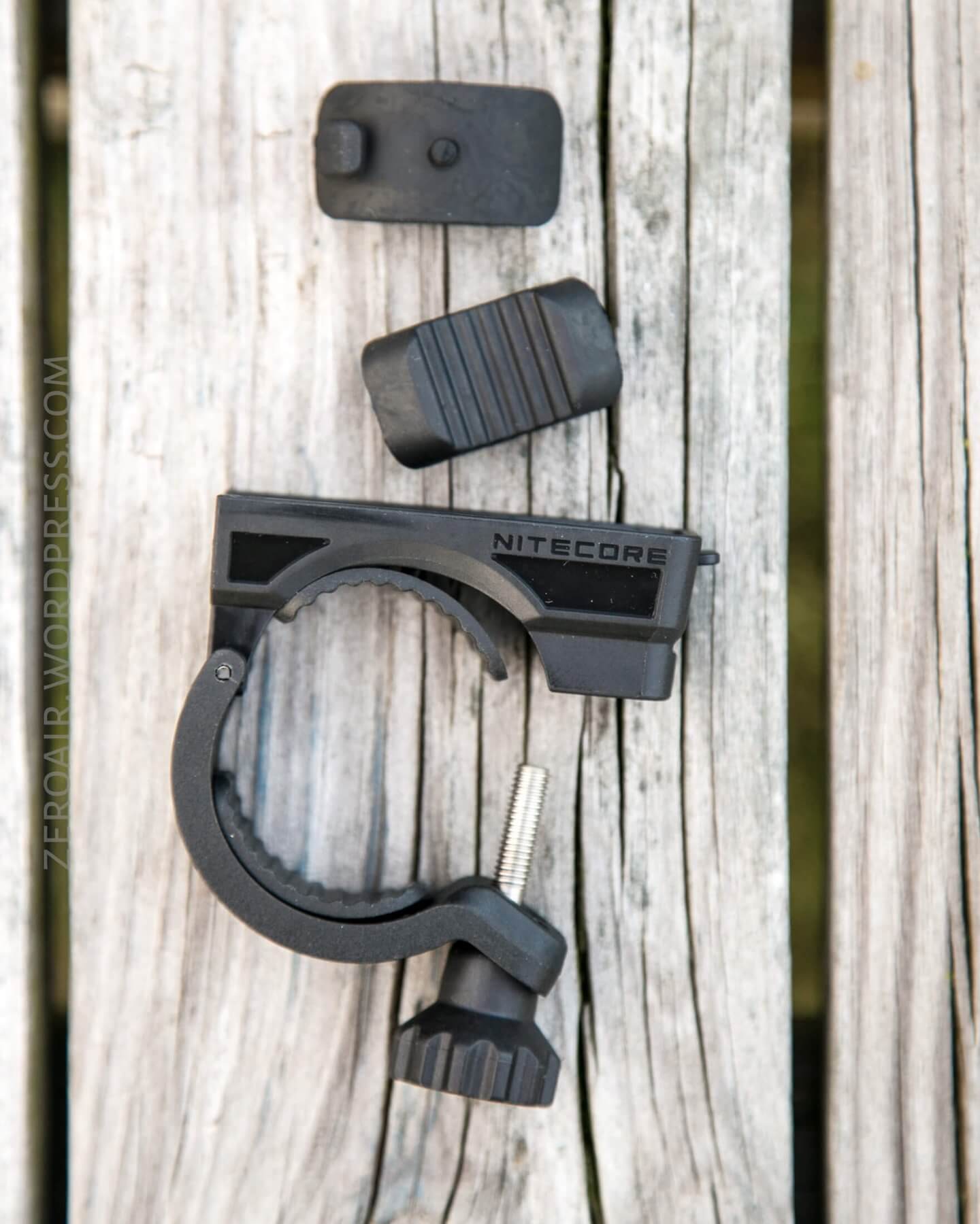 Nitecore includes four pads, which allow use on different sized handlebar. Seen above, installed, are the two thinnest options. They are rubber, and have “teeth” which do help grip the bar.