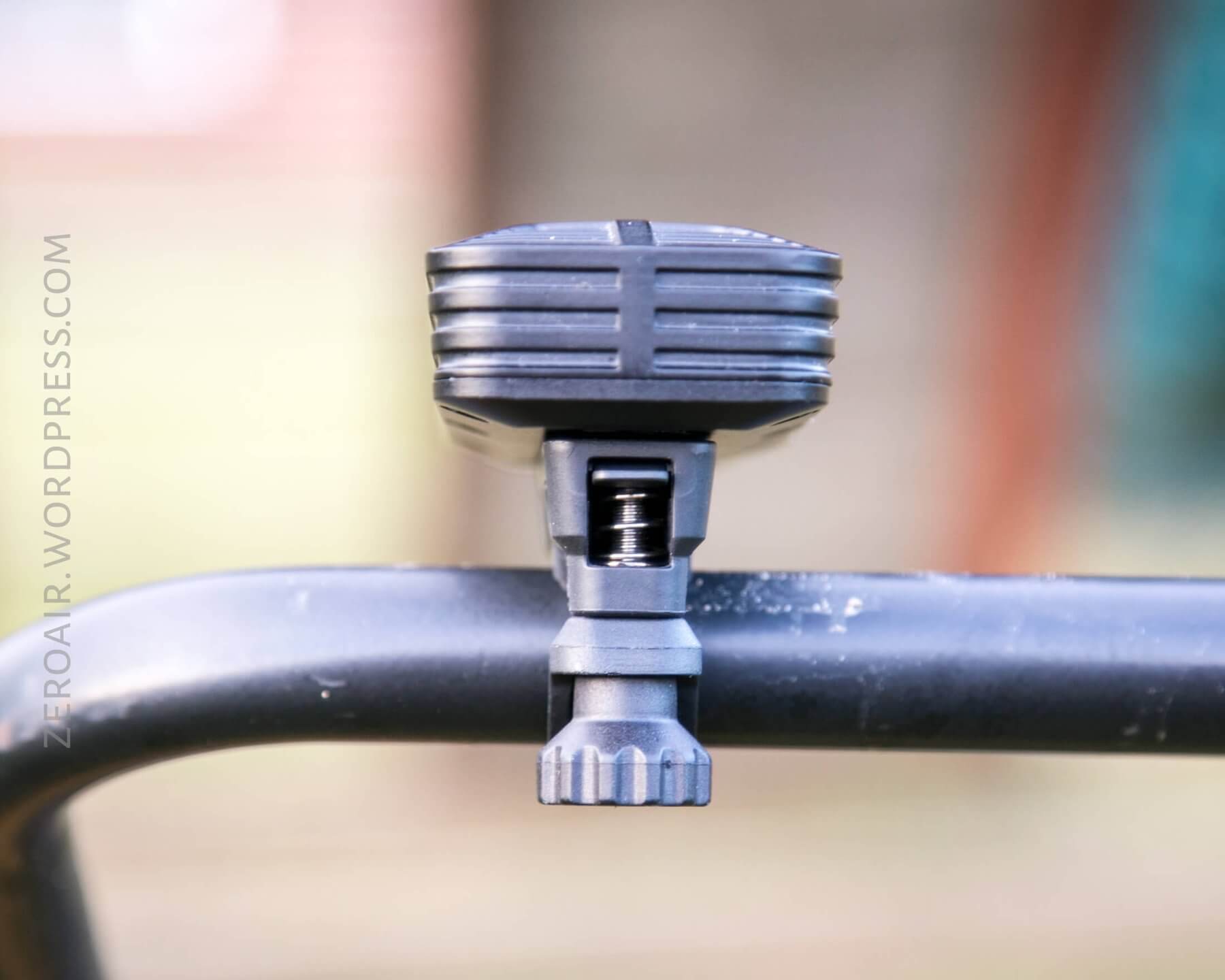 Primarily this light will be held in place by the handlebar mount clip. This isn’t a “quick release” type, but it has a thumb screw which allows fairly quick release. As a counterpoint, the JETBeam I recently reviewed required an Allen key to remove. Not only is this better for removing, it’s also a better mount in general. Much easier to use.