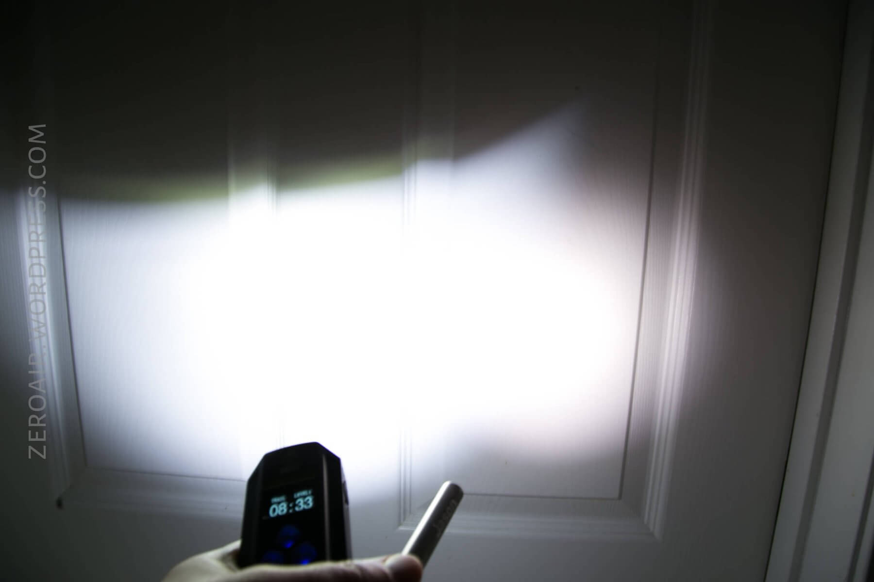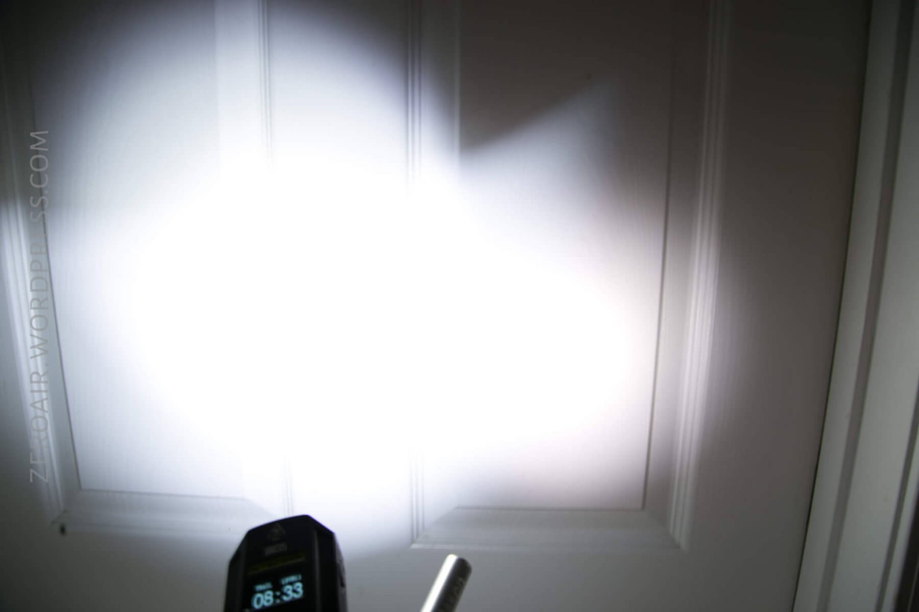 Below, see the refresh rate of the display being picked up. Also note that when the remote switch is being used, the micro-USB cover is out (obviously). Nitecore has in other products (MH12GTS for example) a waterproof micro-USB. I don’t know if that’s being used here (doubt it, but would be nice), but the plug fits into the opening fairly well anyway. Waterproof when plugged? Hard to say.