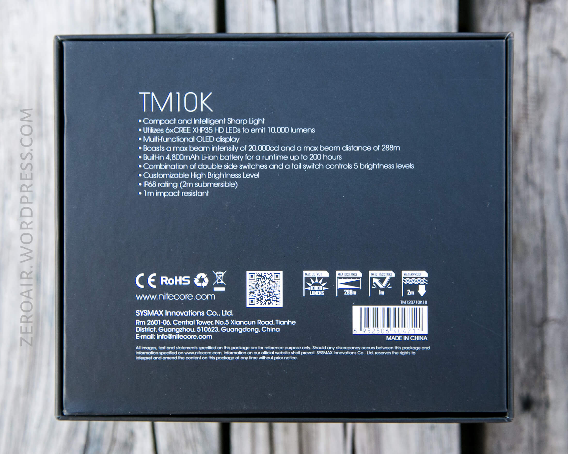 Nitecore has an upscale version of their standard packaging – I’d call this their upscale “normal” package really, and that’s what the TM10K ships in. The box slides open pretty easily, and is nicely labeled.