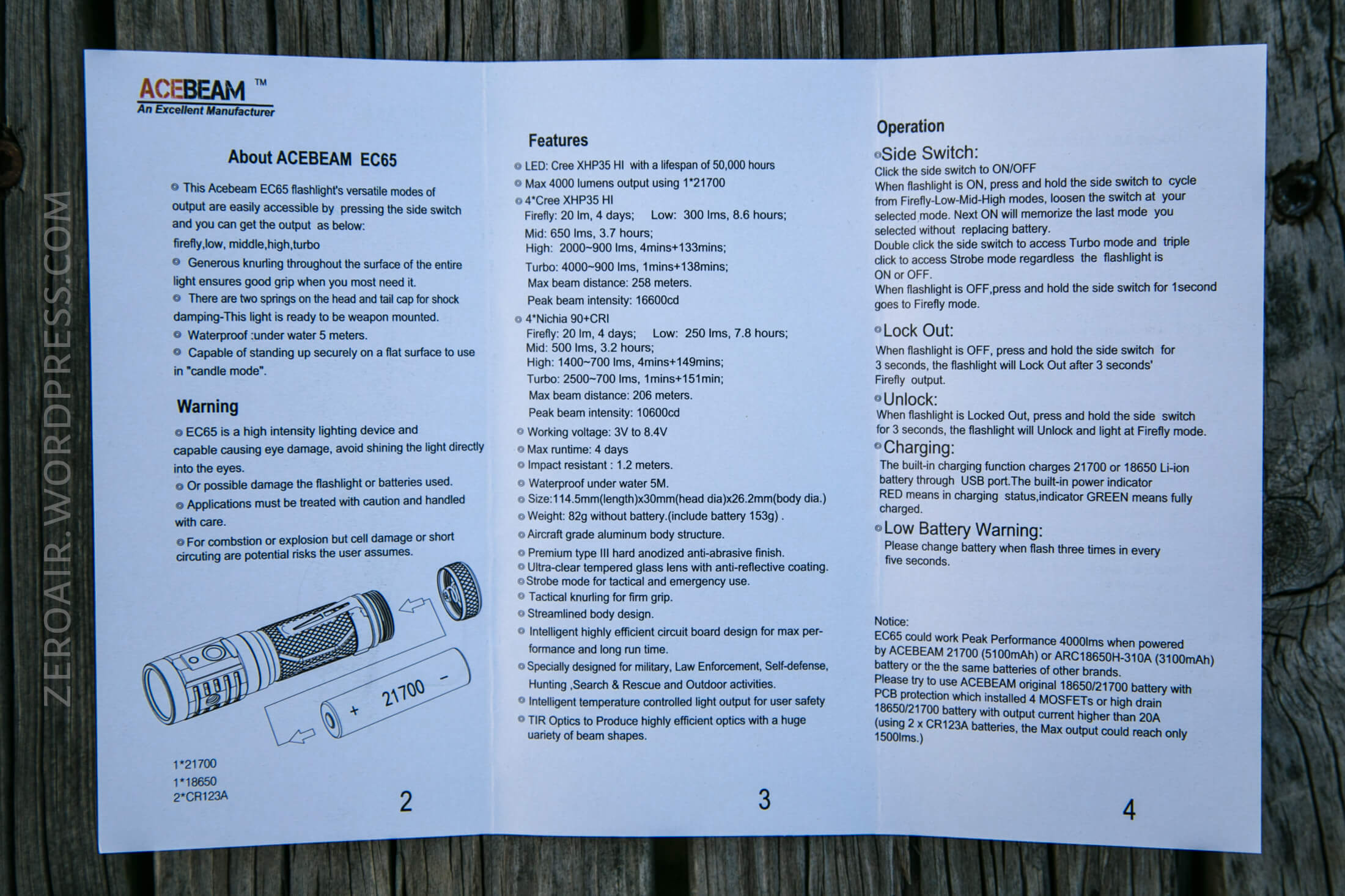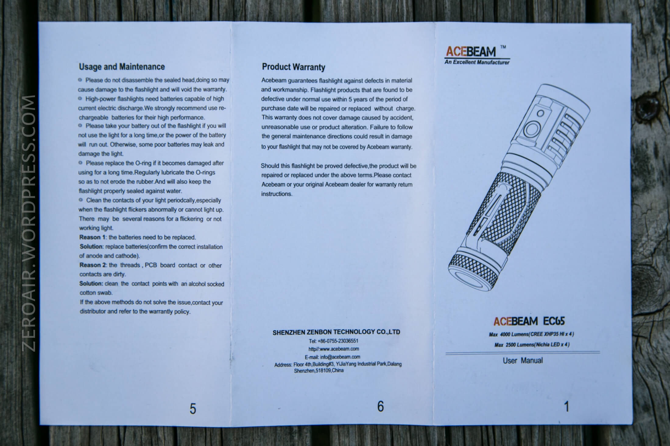 The manual is just fine. I would love for the table that’s on the back of the box to be in the manual too; seems like just an oversight. Based on my experience with Acebeam, I think manuals might not be their top concern.