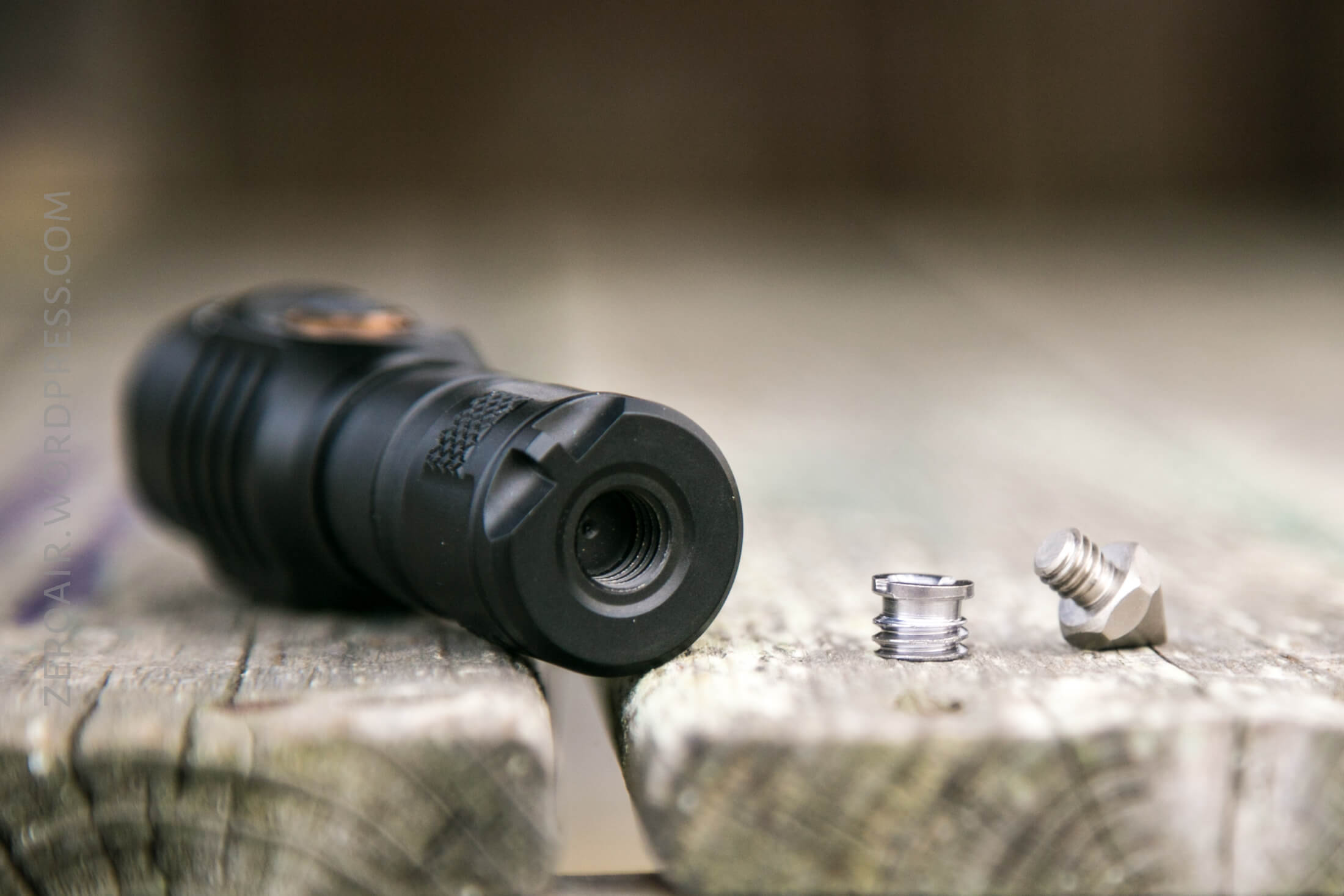 Aside from having the option of a strike point, the screw hole in the tailcap fits a normal tripod mount. There’s also a screw-in adapter for a smaller tripod mount, too. That’s a nice touch!