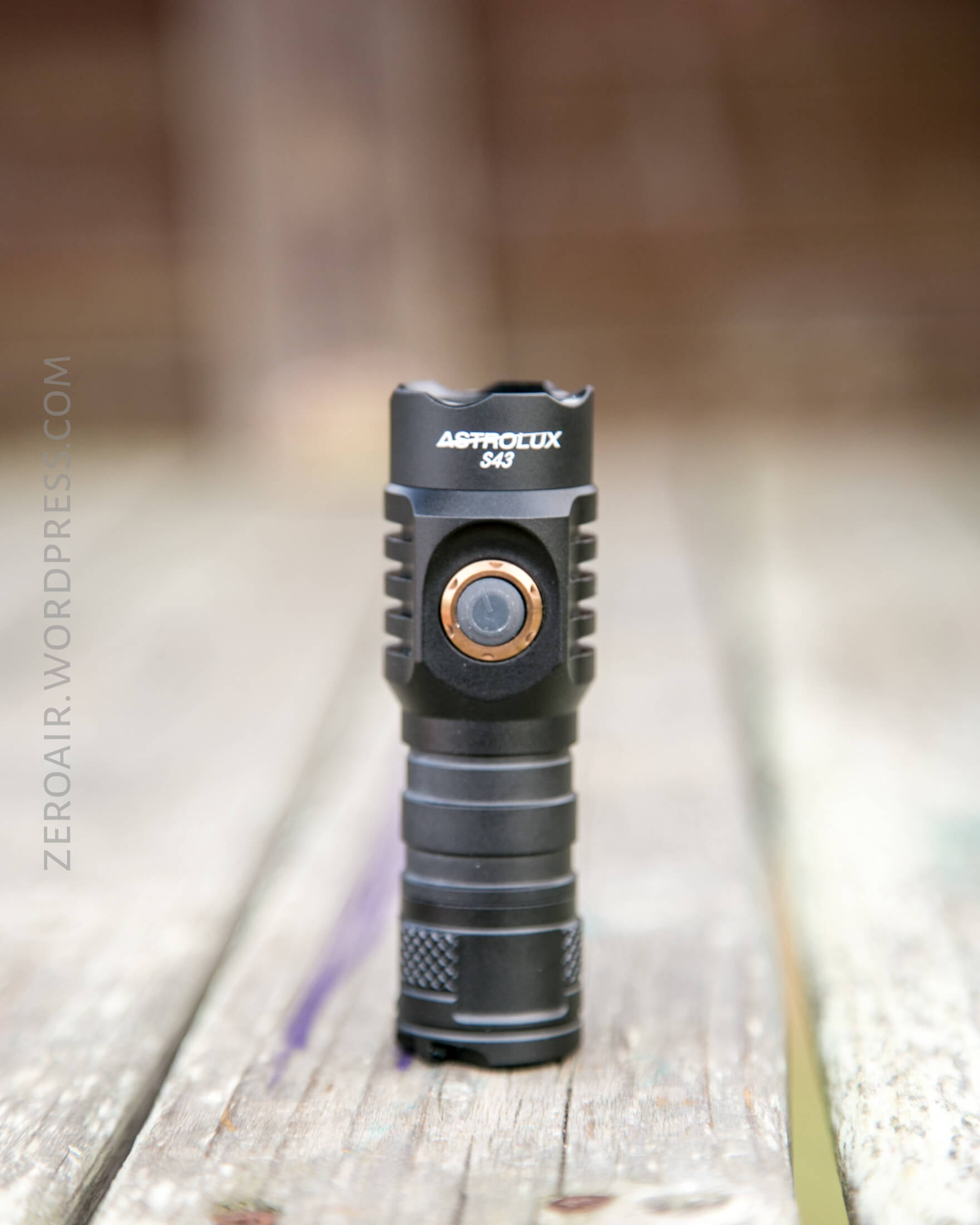 There are two versions of the S43. There’s a Nichia 219c version (seen here) and a Cree XP-G3 version. There’s also a S43s version, which adds a big copper middle part for heat transfer. It’s also available with both emitter options. Both lights include a 18650 and 18350 cell tube.
