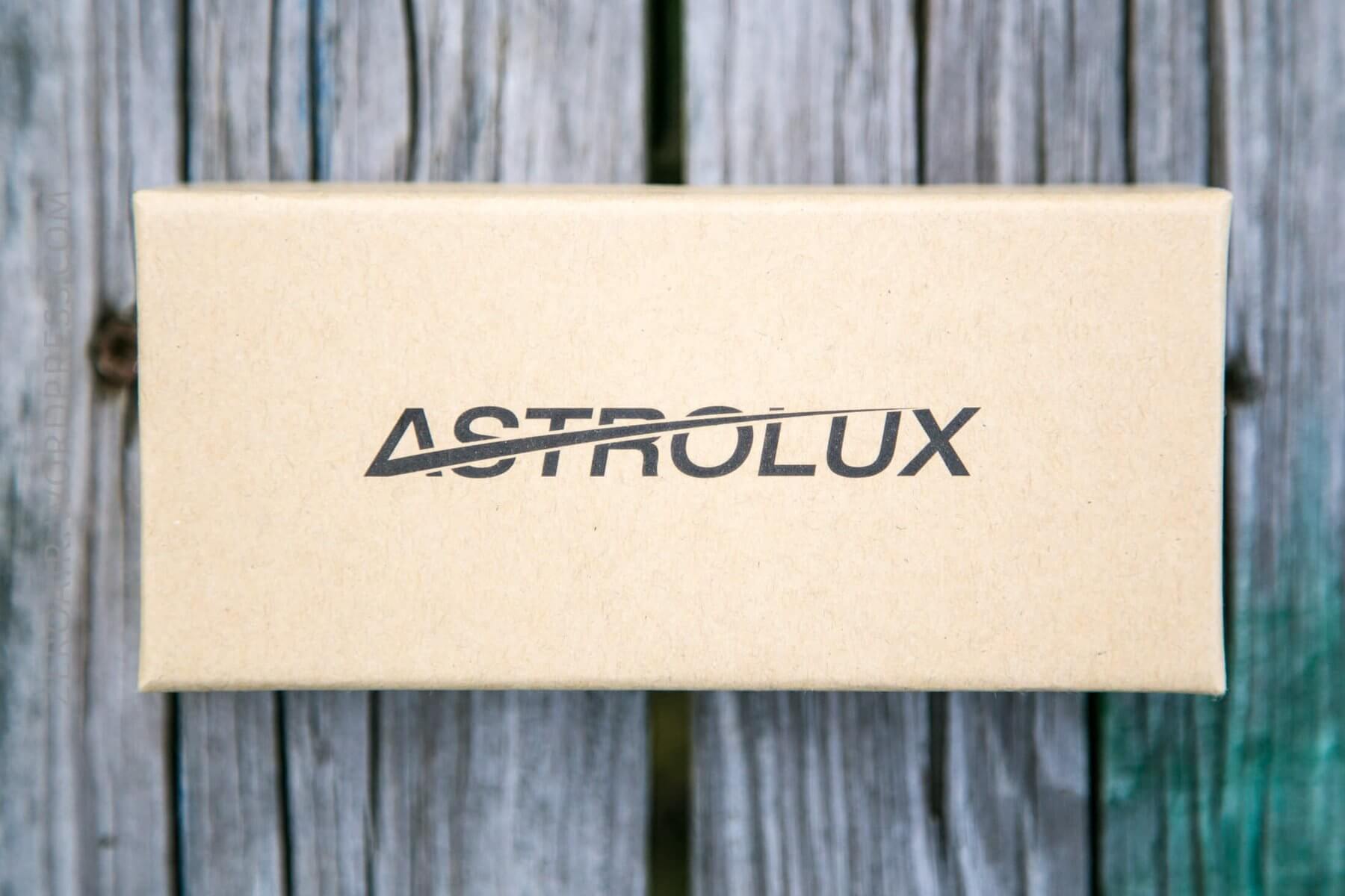 Typical Astrolux package, with a slip fit box, and edge relief for grabbing and opening.