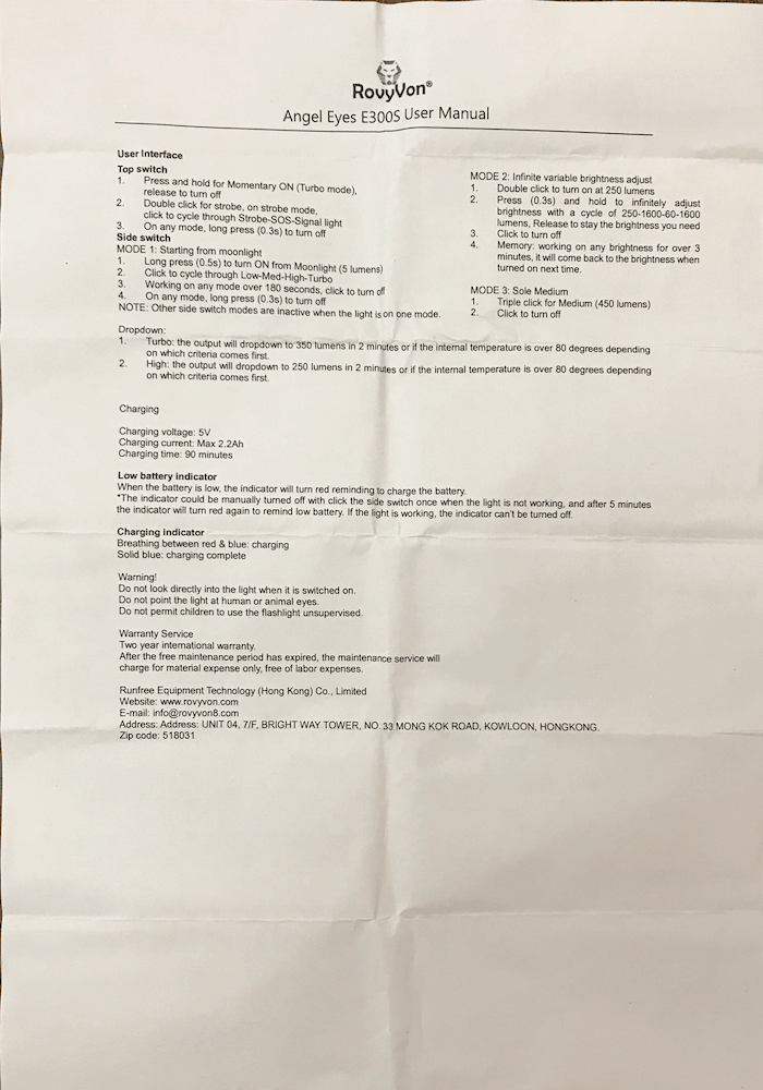 Here’s a link to the RovyVon E300S Angel Eyes flashlight product page.