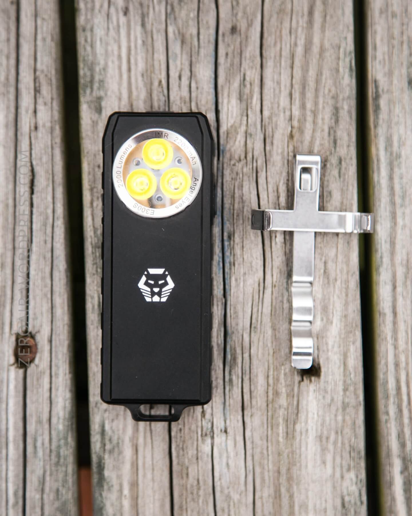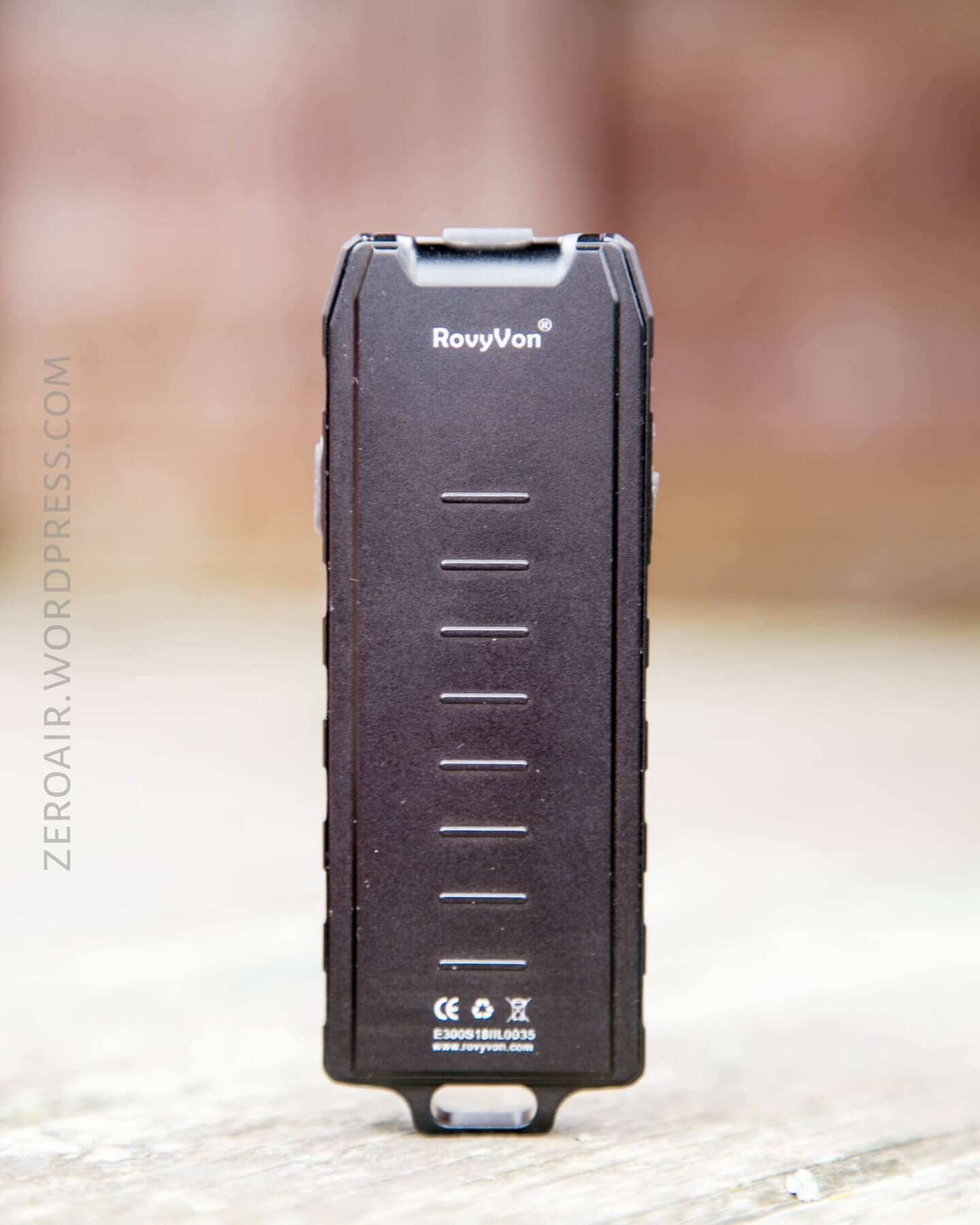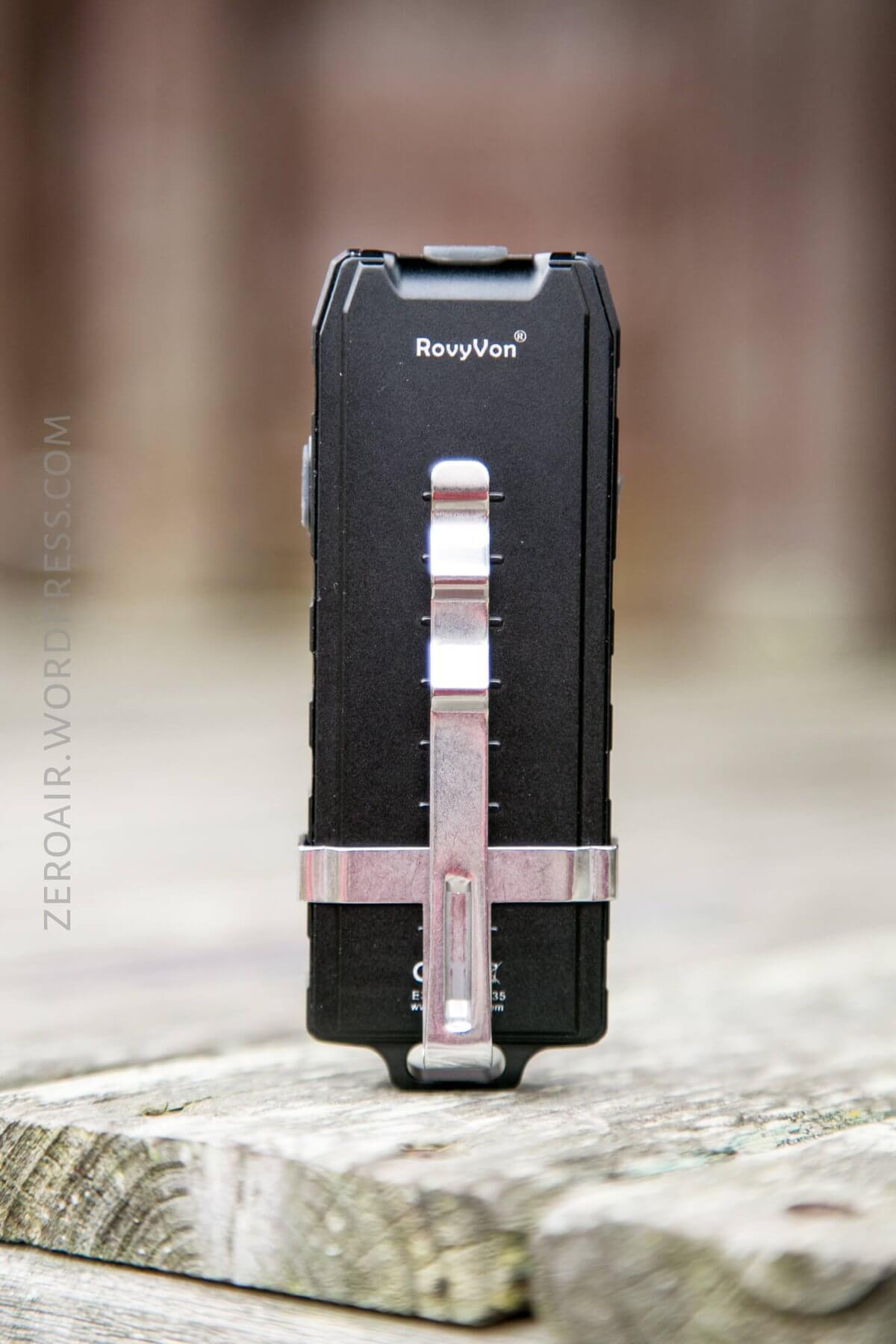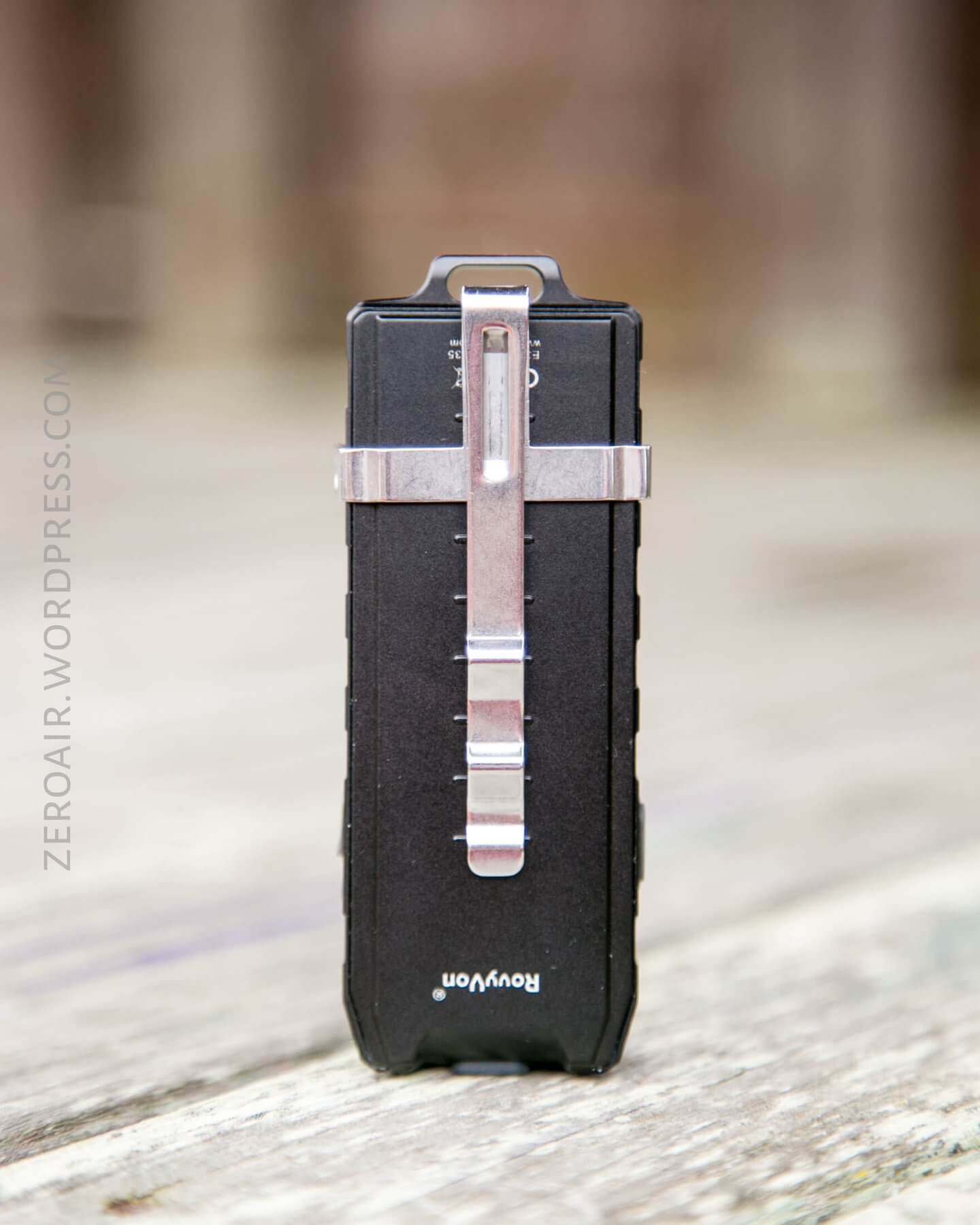A pocket clip is included. It’s the same style as other RovyVon lights, with the clip basically friction-fitting around the sides – a hugger clip, if you will. It’s different from many friction clips, though, in that it can be positioned just about anywhere up and down the body of the light, front or back. That gives quite a few options for very precise placement.