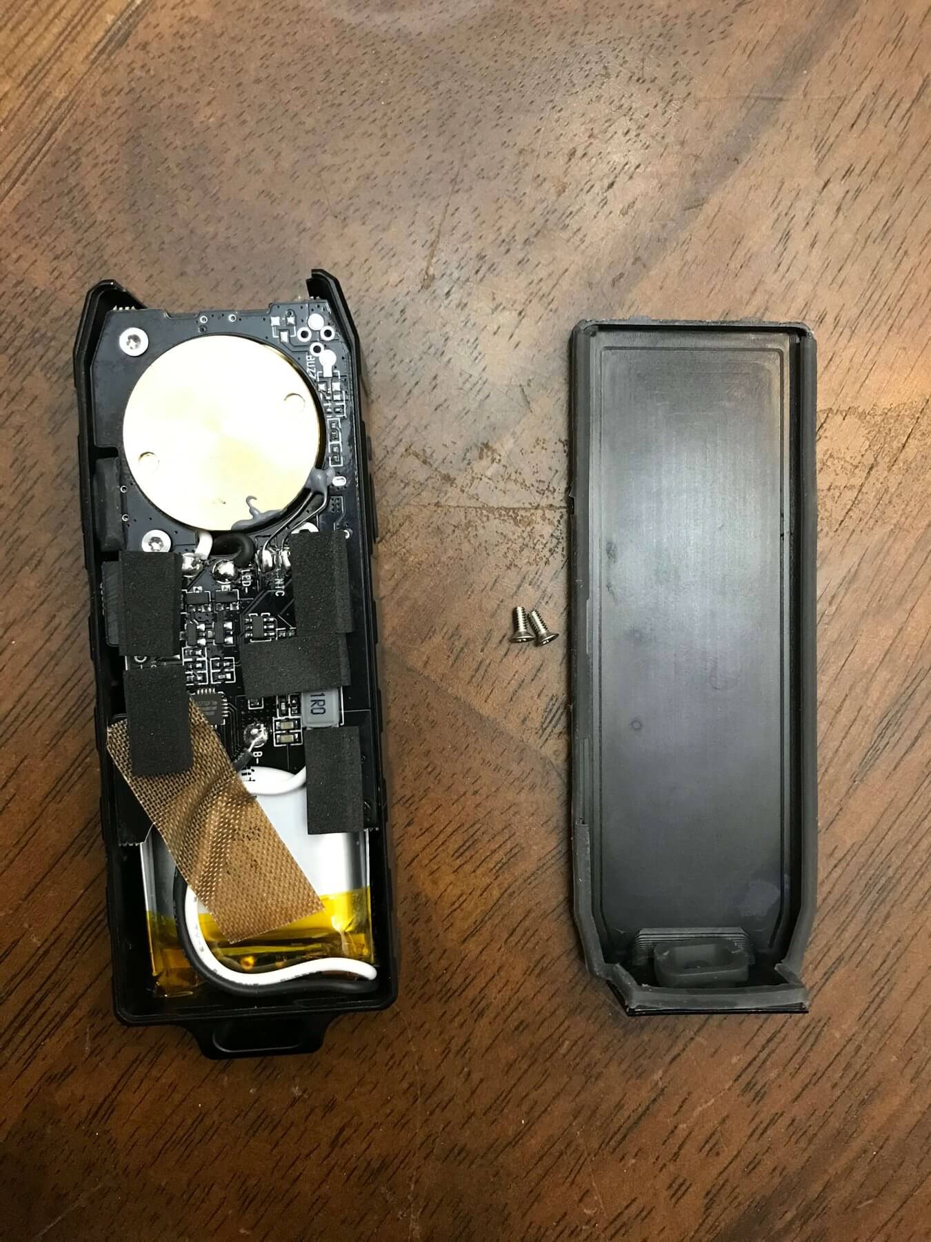 There are two holes in the (non-liquid part) of this container. They’re for the leads. I broke a lead when unscrewing – learn from my mistake. Don’t twist on this too hard! Should be an easy fix, though.