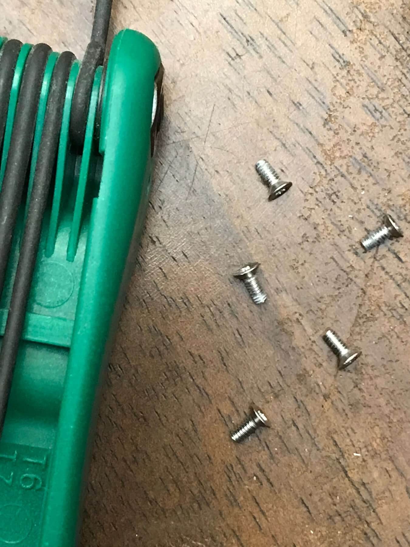 Here are all the screws required to get things completely apart. Two Torx T6 on the outside, three on the inside: