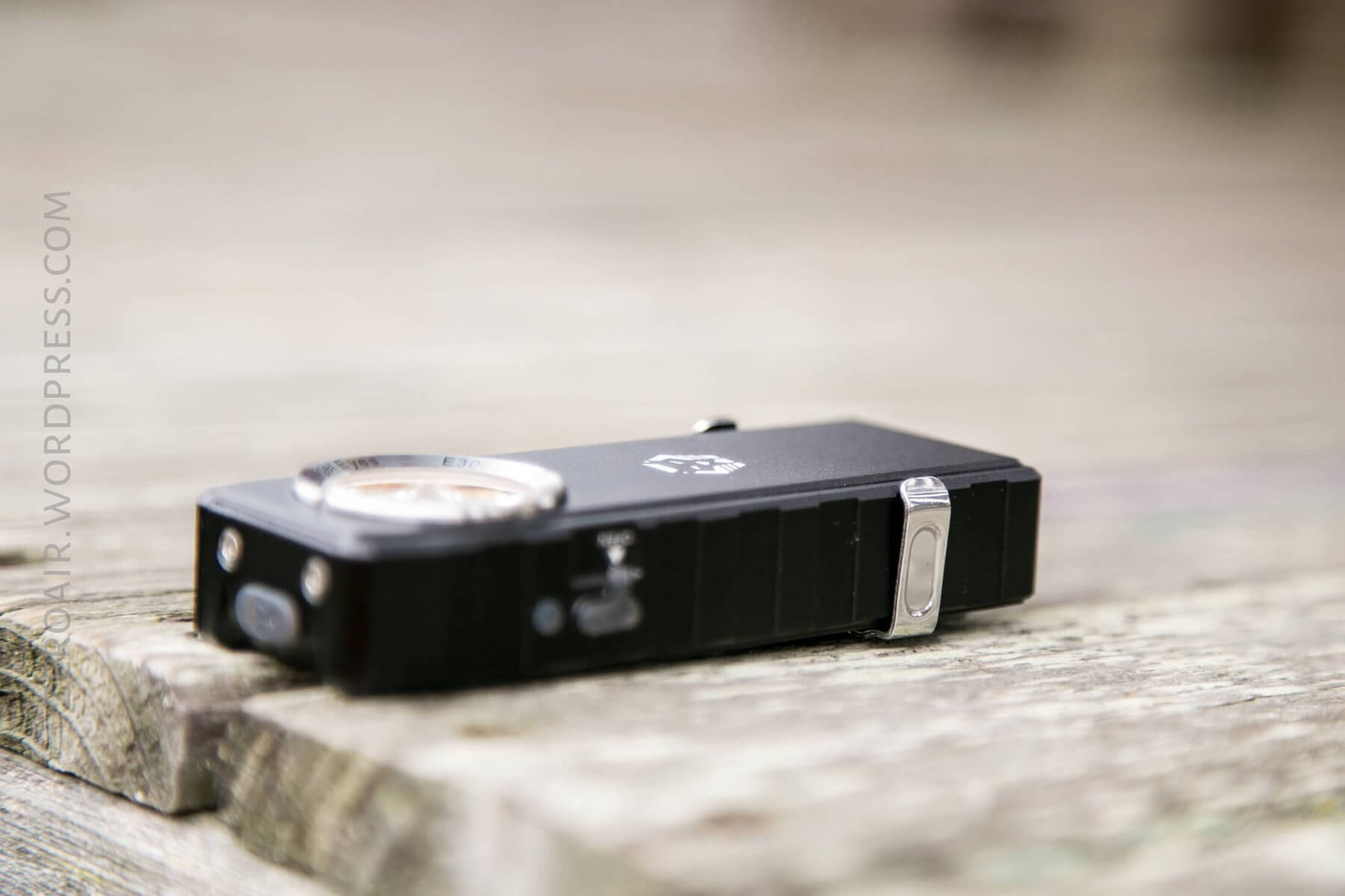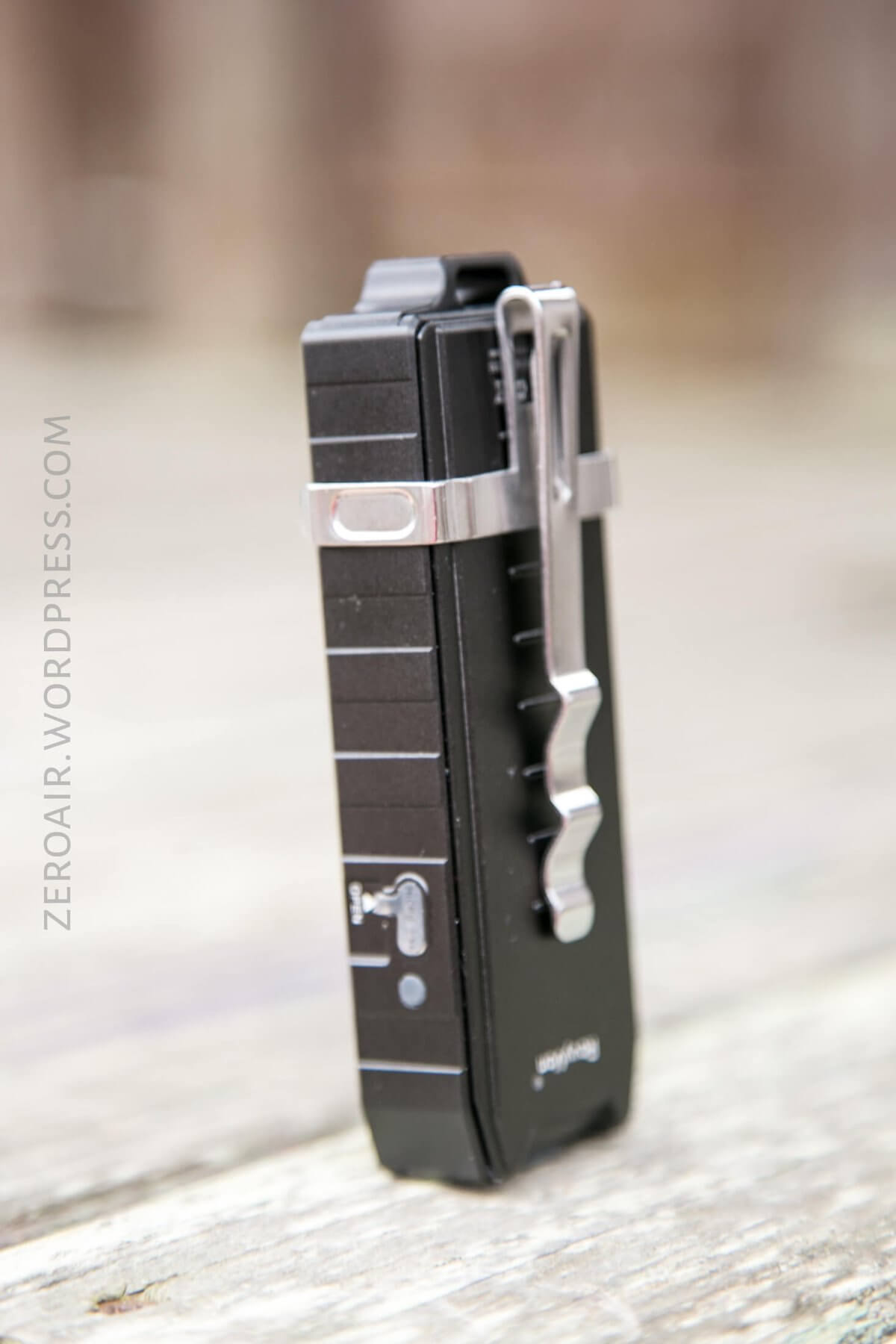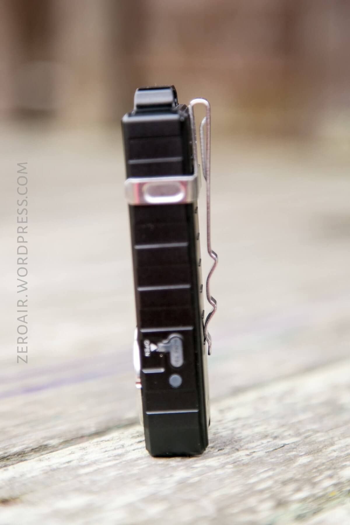 The clip is “ok.” The light actually rides quite well with the clip, and when putting the light into a pocket, it clears the shoulders fine. So it goes deep easily. And since the light is rectangular, the light does sit nicely in the pocket.