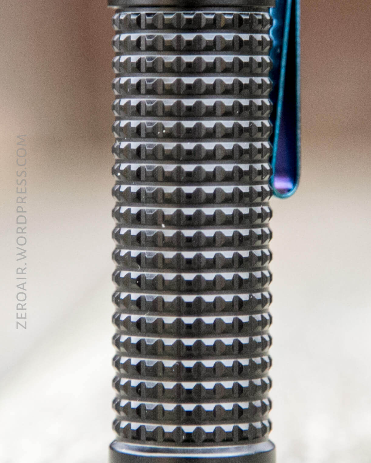 The S1RII Baton isn’t the smallest 16340 light made by Olight, but it does add the feature of onboard charging. I would like to see this knurling on the smaller model, as seen below, but with a removable body, not tailcap.