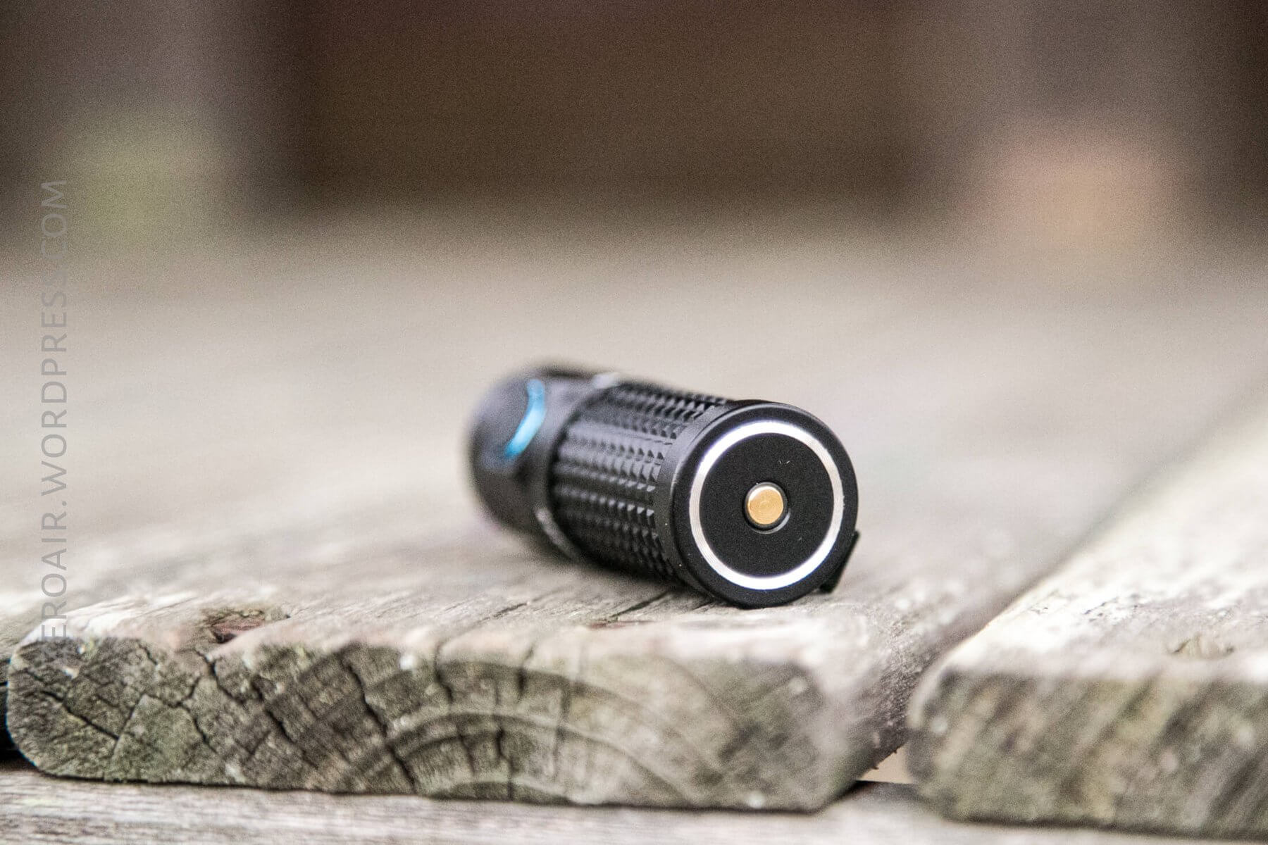 The charge circuit is on the tailcap and has exposed positive and negative contacts. It’s possible to read voltage off those, but I don’t have any steel wool to test if the circuit is “live” live. (That said, I do think Olight learned a valuable lesson with the H2R fiasco.)